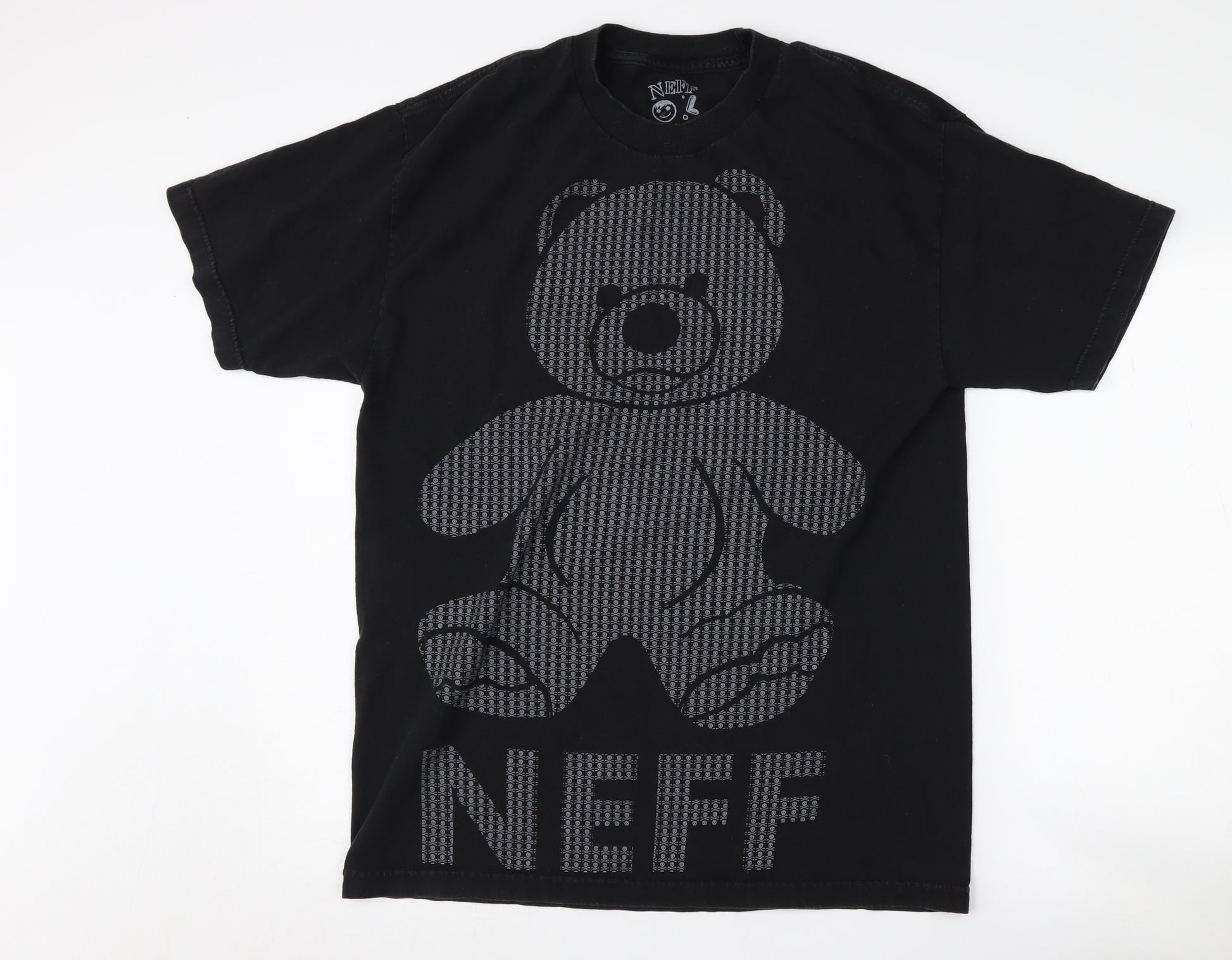 Embrace unique style with this Neff Men's Black T-Shirt, featuring a standout bear graphic. Crafted from 100% combed cotton, this short sleeve tee offers comfort and durability. The jersey fabric and crew neckline provide a classic fit, making it an excellent choice for everyday wear. With its bold design and logo accents, this shirt is perfect for those who like to make a statement. Suitable for all seasons, it retains an excellent condition despite slight wear and is machine washable for ease of care. Add this distinctive piece to your wardrobe and showcase your individuality.
