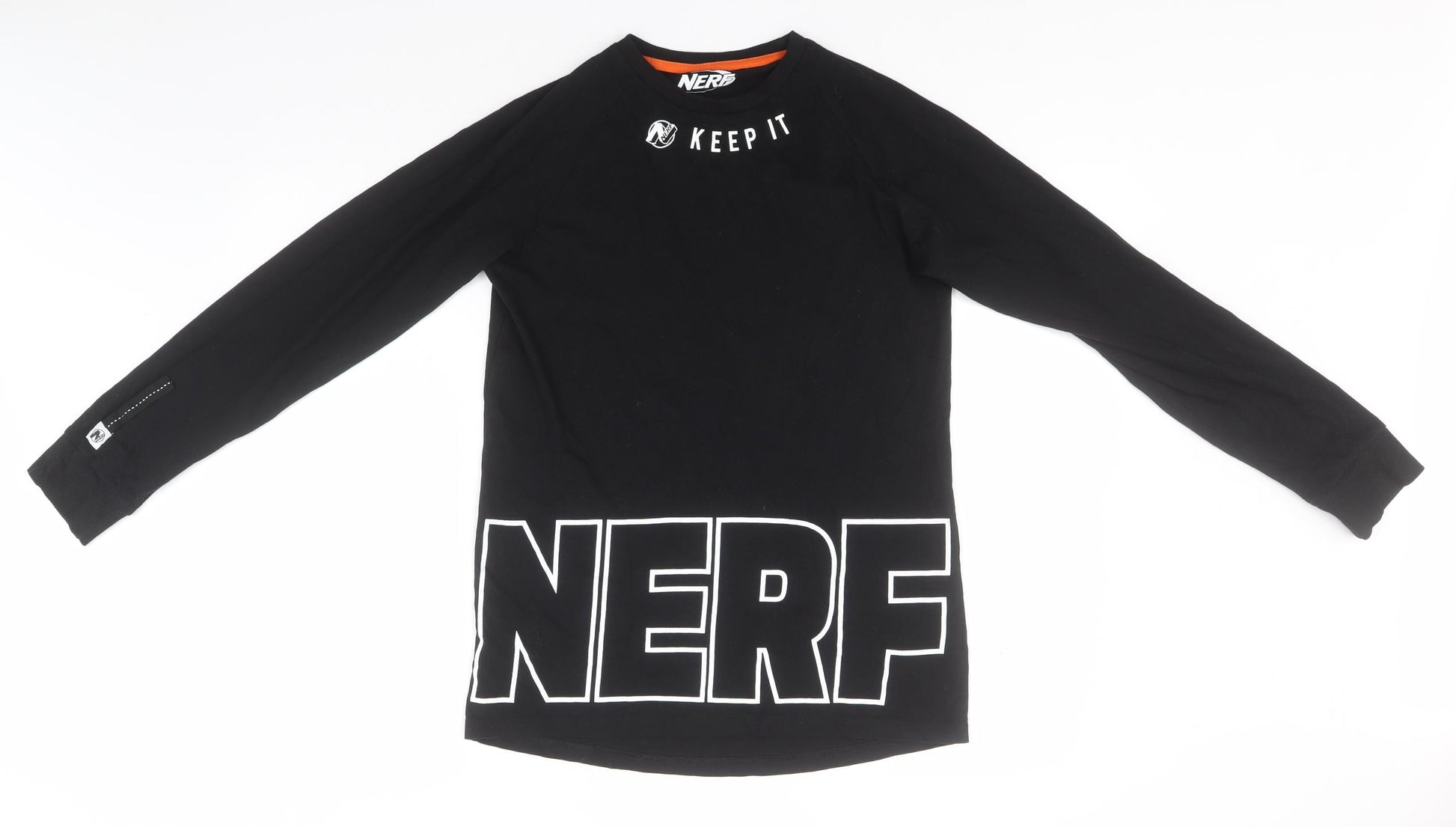 Girls Black Cotton Basic T-Shirt Size 13-14 Years Round Neck - Nerf