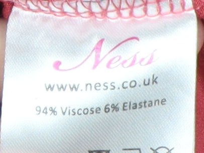 This charming Ness Women's Pink Long Sleeve A-Line Dress is a delightful addition to any wardrobe. Crafted from soft jersey fabric, this knee-length dress offers both comfort and style with its feminine pink hue. Ideal for casual outings, it features a flattering scoop neckline and practical pockets for added convenience. Made from a blend of viscose and elastane, the material ensures a flexible fit that moves with you, perfect for transitioning between seasons like spring and autumn. The dress’s long sleeves make it suitable for cooler days while maintaining a chic and elegant appearance. With its simple yet stylish design, this dress is perfect for those who value both fashion and functionality. It's machine washable, ensuring easy care and maintenance. The condition is excellent, showing minimal signs of wear, making it a value-for-money choice at £18.25.