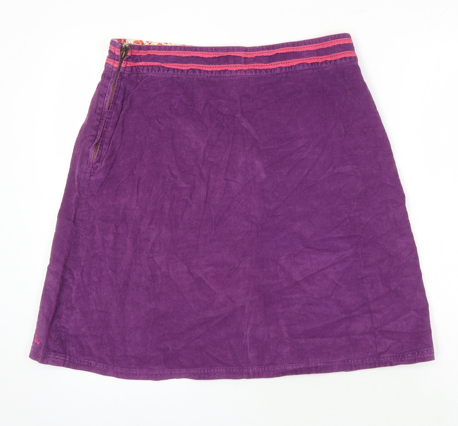 Womens Purple Cotton A-Line Skirt Size 12 Zip - Pocket