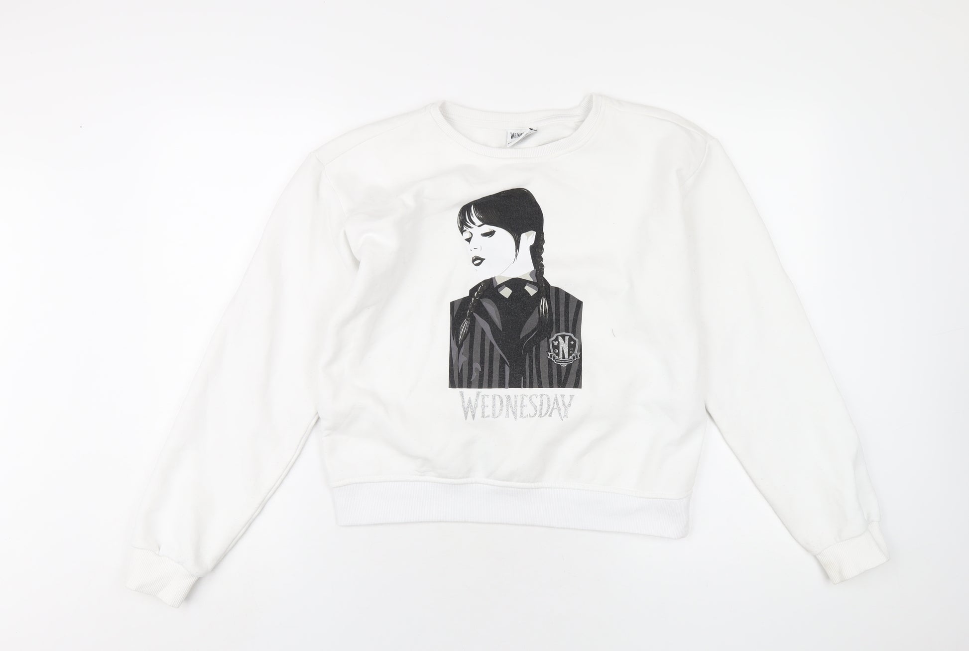 Girls White Polyester Pullover Sweatshirt Size 14-15 Years Pullover - Wednesday