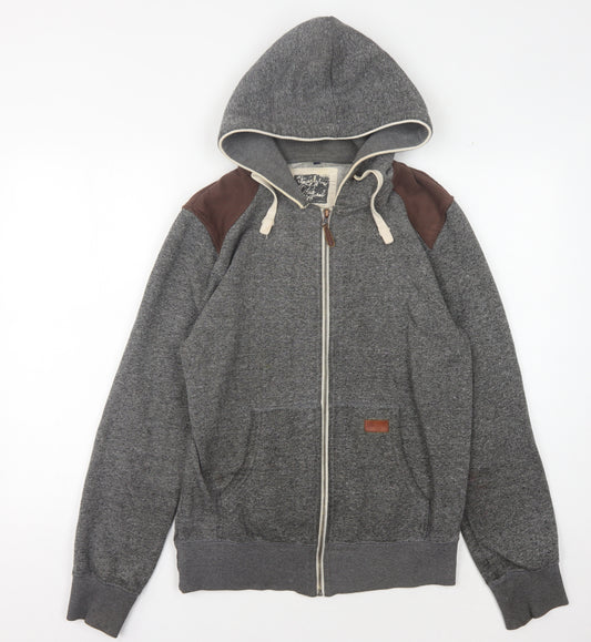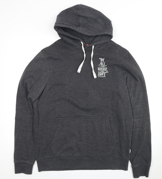 Jack & Jones Mens Grey Pullover Hoodie M Graphic Logo Hooded Sweatshirt