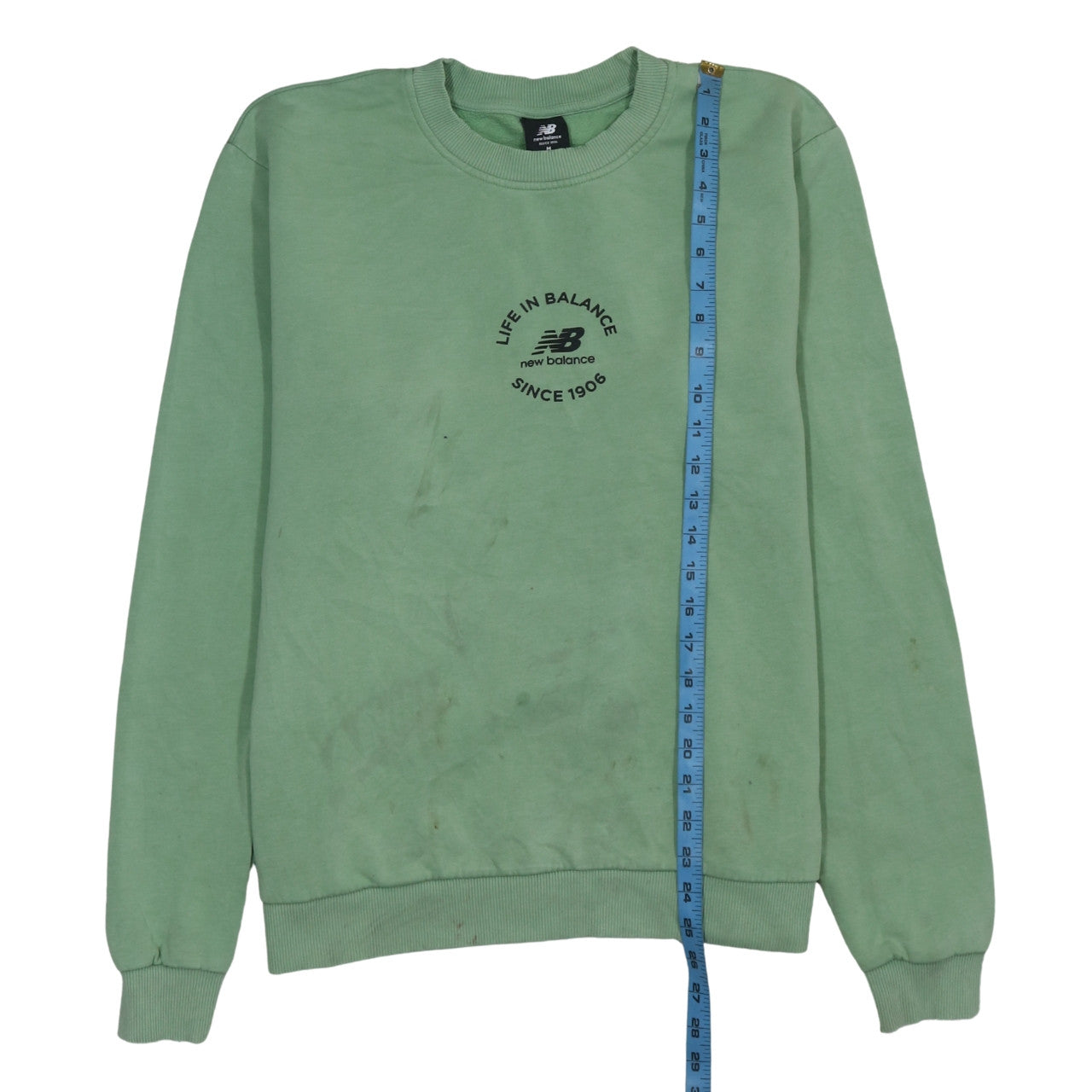 Add a touch of sporty charm to your everyday wardrobe with this New Balance Women’s Pullover Sweatshirt in a soft green shade. Designed with comfort and simplicity in mind, this sweatshirt features a classic crew neck and long sleeves, perfect for layering or wearing on its own. Crafted from high-quality cotton material, it offers a soft, breathable feel ideal for all-day wear. The fleece interior adds warmth for cooler days while ensuring lightweight comfort. The front features the authentic New Balance logo and 'Life in Balance Since 1906' emblem, giving it a signature athletic style. The ribbed cuffs and hem provide a snug, flattering fit that keeps its shape. Perfect for casual outings, lounging, or light exercise, this sweatshirt can easily be matched with jeans, joggers, or leggings for a relaxed yet stylish look. Though gently used and showing minor marks, it remains in excellent wearable condition with soft fabric integrity preserved. A versatile everyday essential for those who appreciate sporty fashion with classic comfort. This piece from New Balance is an excellent choice for those who love timeless casualwear that never goes out of style.
