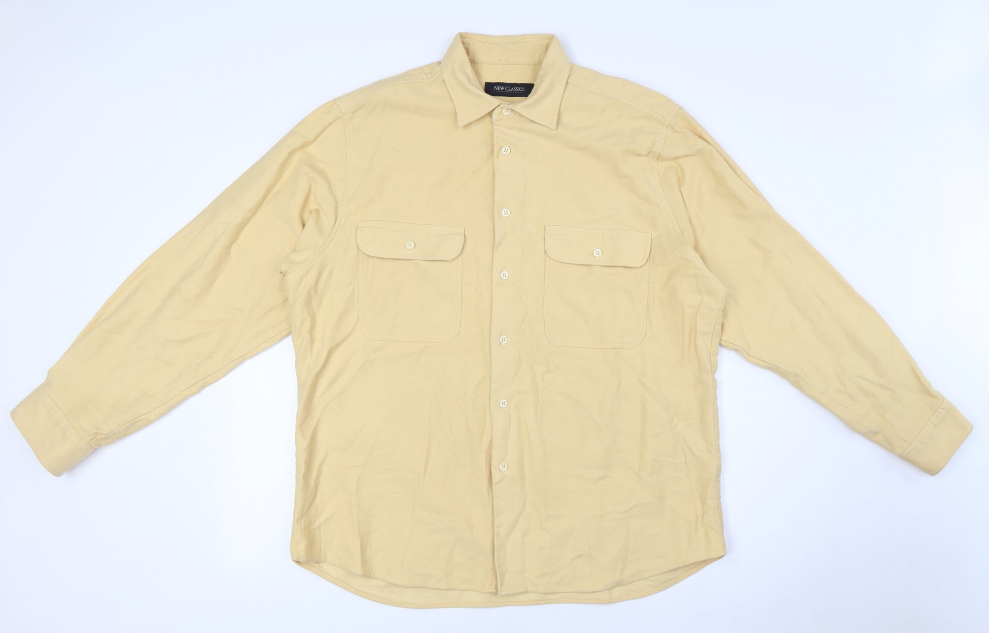 Mens Yellow Cotton Button-Up Size L Collared Button