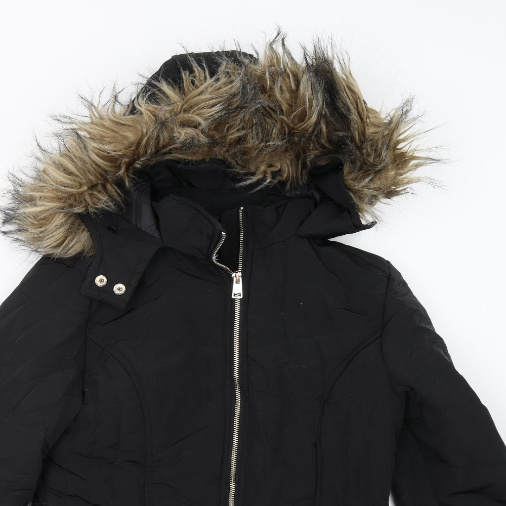 Marks and Spencer Girls Black Long Hooded Puffer Coat 12-13 Years Stormwear
