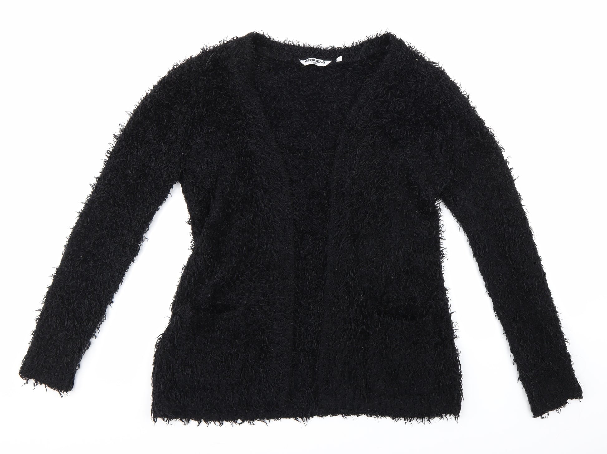 Girls Black Cardigan Jumper Size 14-15 Years - Fluffy
