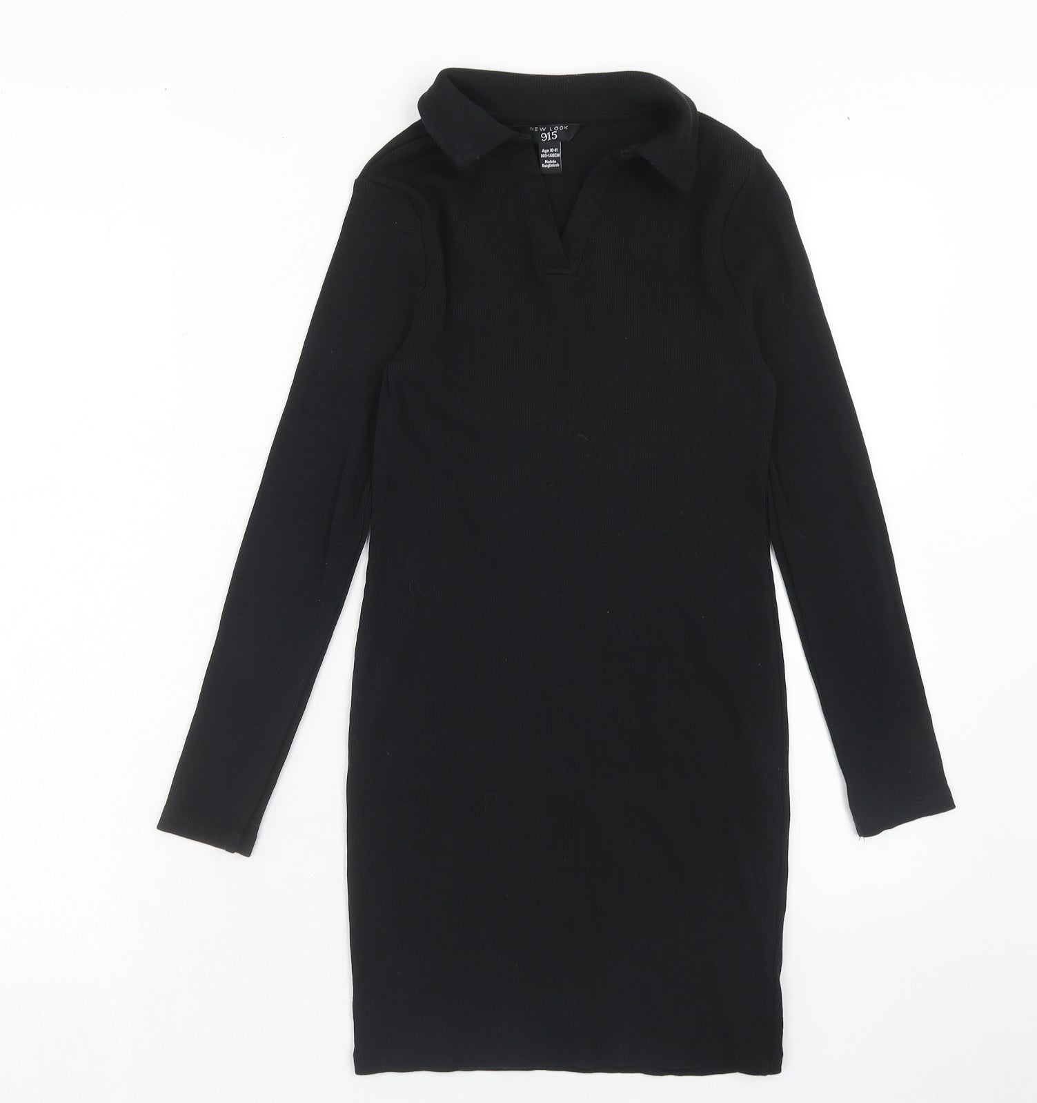 Girls Black Cotton A-Line Size 10-11 Years Collared Pullover