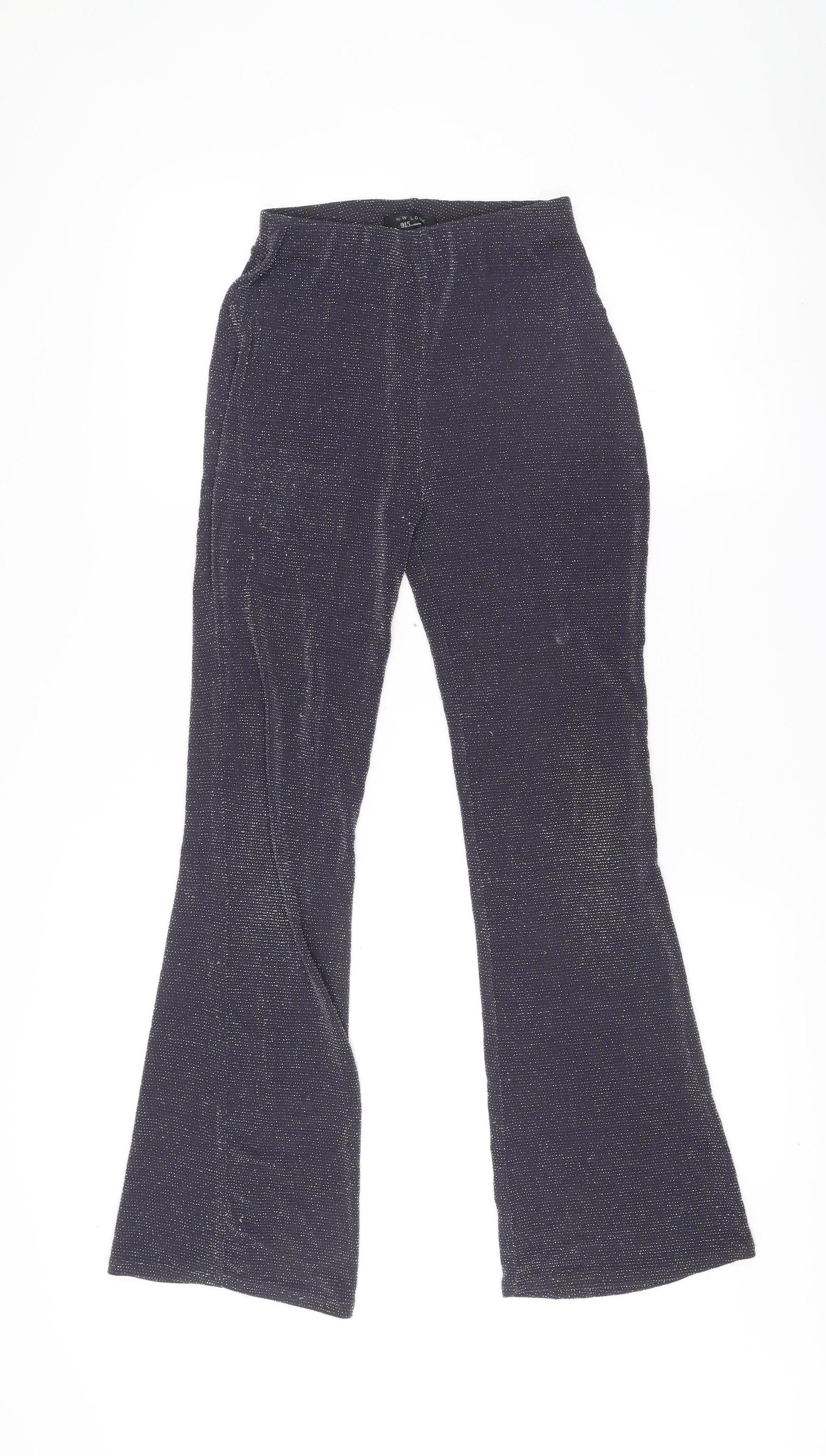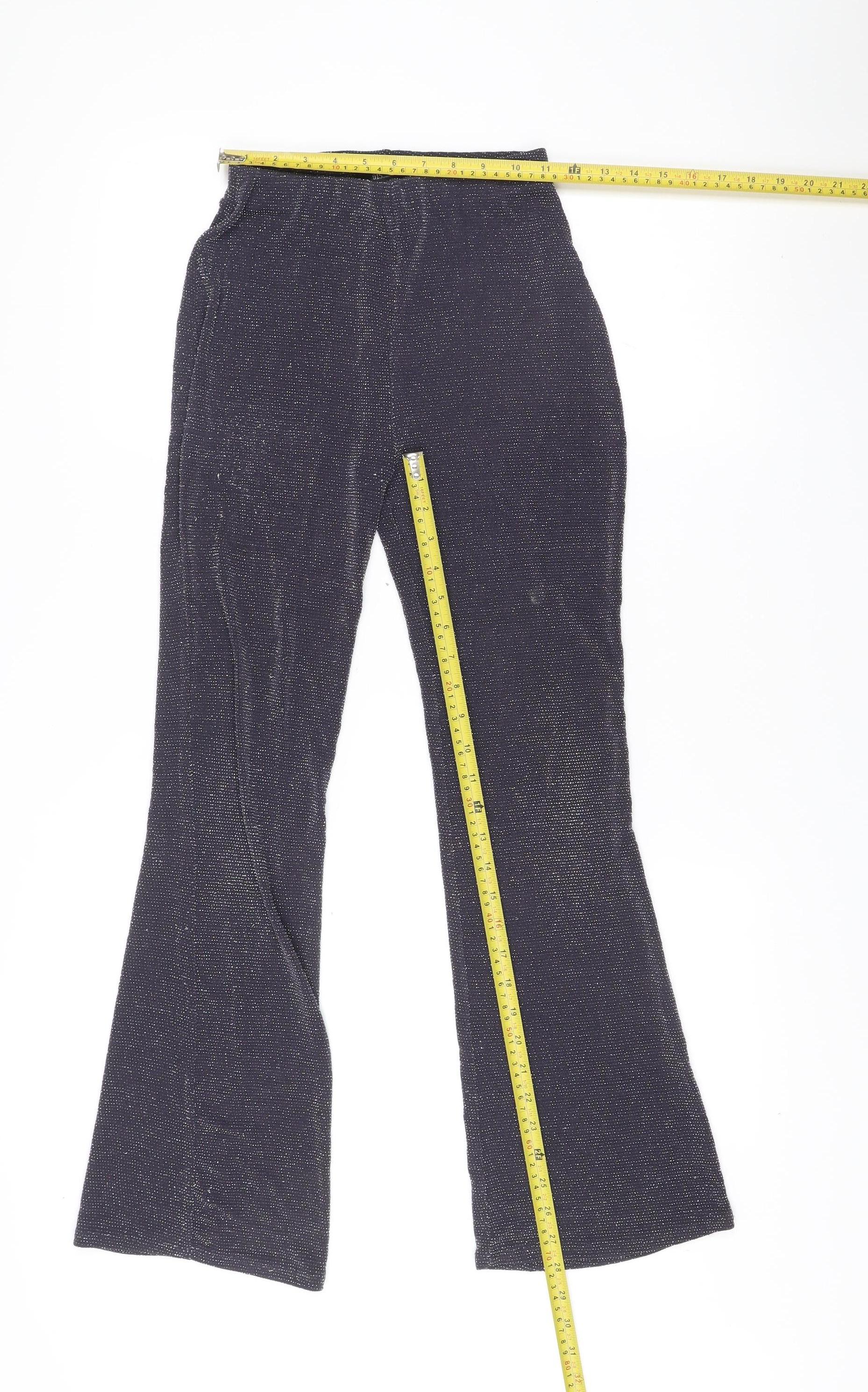 Step into effortless style with these stunning New Look girls' jeggings, designed to bring a touch of sparkle to her wardrobe. Made for ages 14-15 years, these trousers provide a slim and flattering fit while offering plenty of comfort thanks to their stretch construction. Crafted from a high-quality blend of 93% nylon, 5% elastane, and 2% metallic fibre, they softly hug the body while allowing ease of movement, making them practical as well as stylish.These jeggings come in a classic black base with subtle glitter woven throughout, giving them a glamorous shimmer that's perfect for parties, celebrations, and occasions where she wants to shine. The knit fabric offers comfort and breathability, while the slim fit helps create a sleek silhouette. Whether paired with a smart blouse for a formal event or dressed down with a casual top and trainers, these versatile jeggings ensure she's always ready to make an impression.Designed for autumn and winter wear, the trousers provide a stylish option that brings warmth and sparkle to colder days. With their modern look and shiny theme, these trousers bring a fresh, fashionable update to her outfits without compromising on comfort. They are machine washable, making them easy to care for, which is ideal for busy lifestyles.Presented in very good pre-loved condition, these jeggings show no stains, damage, or flaws, though they no longer include their original retail tags. They still have plenty of life left to give and are an excellent choice for parents looking for stylish, affordable, and eco-friendly additions to their child’s wardrobe.Perfect for occasions such as parties or festive gatherings, these New Look girls' black glitter slim-fit jeggings will instantly elevate her wardrobe, providing a chic staple she’ll reach for time and time again.