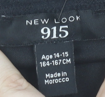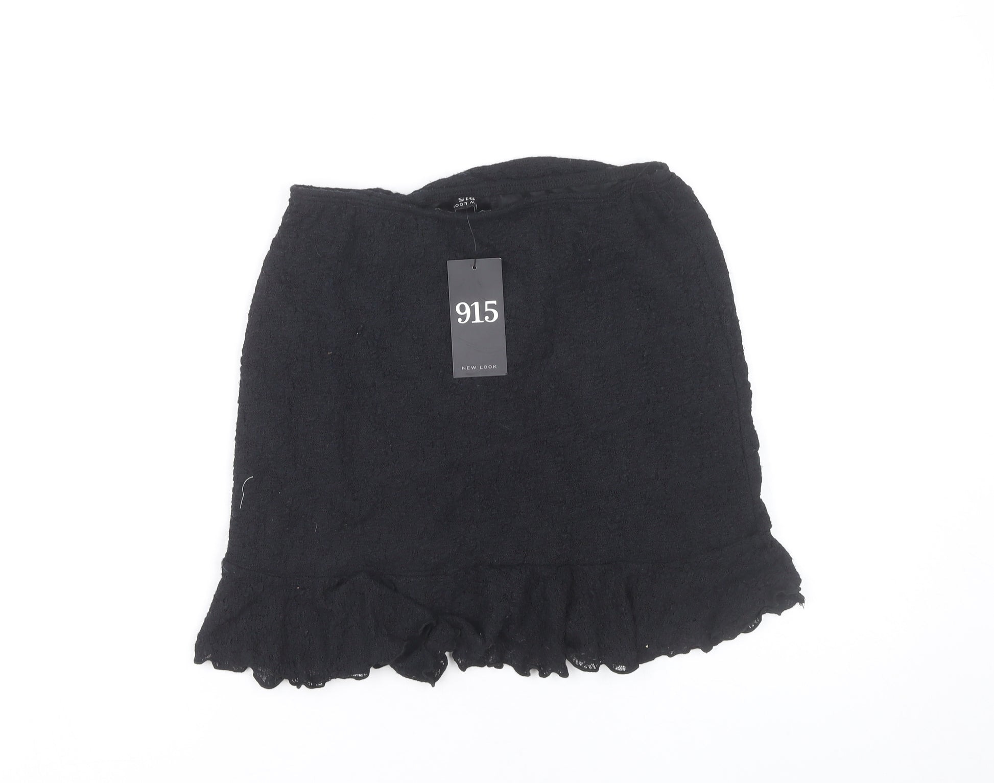 Elevate your little one’s wardrobe with this chic black lace skirt from New Look’s 915 collection, designed especially for teenage girls. Perfect for ages 14-15, this skirt is crafted to flatter while offering comfort and style for many occasions. The tulip style cut with elegant ruching detail down the front and subtle ruffle accents at the hem gives it a feminine shape that is both trendy and versatile. Made from a comfortable blend of polyester and elastane, it provides a soft touch and allows for easy movement, making it ideal for day-to-day wear as well as special outings. This skirt is fully lined for extra comfort and a smooth fit, ensuring it wears well throughout the day.The skirt is finished with a secure back zip closure, ensuring a neat fit while still being easy to slip on and off. Measuring at a short length, it is a stylish piece that pairs effortlessly with a variety of tops — from casual t-shirts to elegant blouses — making it a staple in any teen’s wardrobe. Perfectly suited for casual wear, school social gatherings, or even parties, this New Look skirt strikes the perfect balance between youthful fun and sophisticated style. The gorgeous black lace overlay gives it a timeless look, while the stylish ruffle edging adds a playful yet polished touch.Perfect for spring, summer, and autumn wears, it can be styled with tights in cooler weather or worn bare-legged in warmer months. With its brand-new condition and original sales tags intact, this piece offers a fresh addition straight to your wardrobe, promising quality and durability associated with New Look’s 915 line. A must-have versatile skirt for any teenage girl looking to stay fashionable and comfortable at the same time.