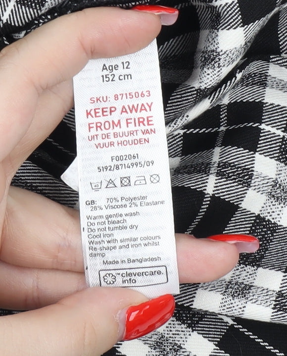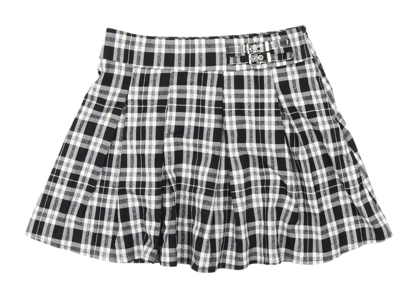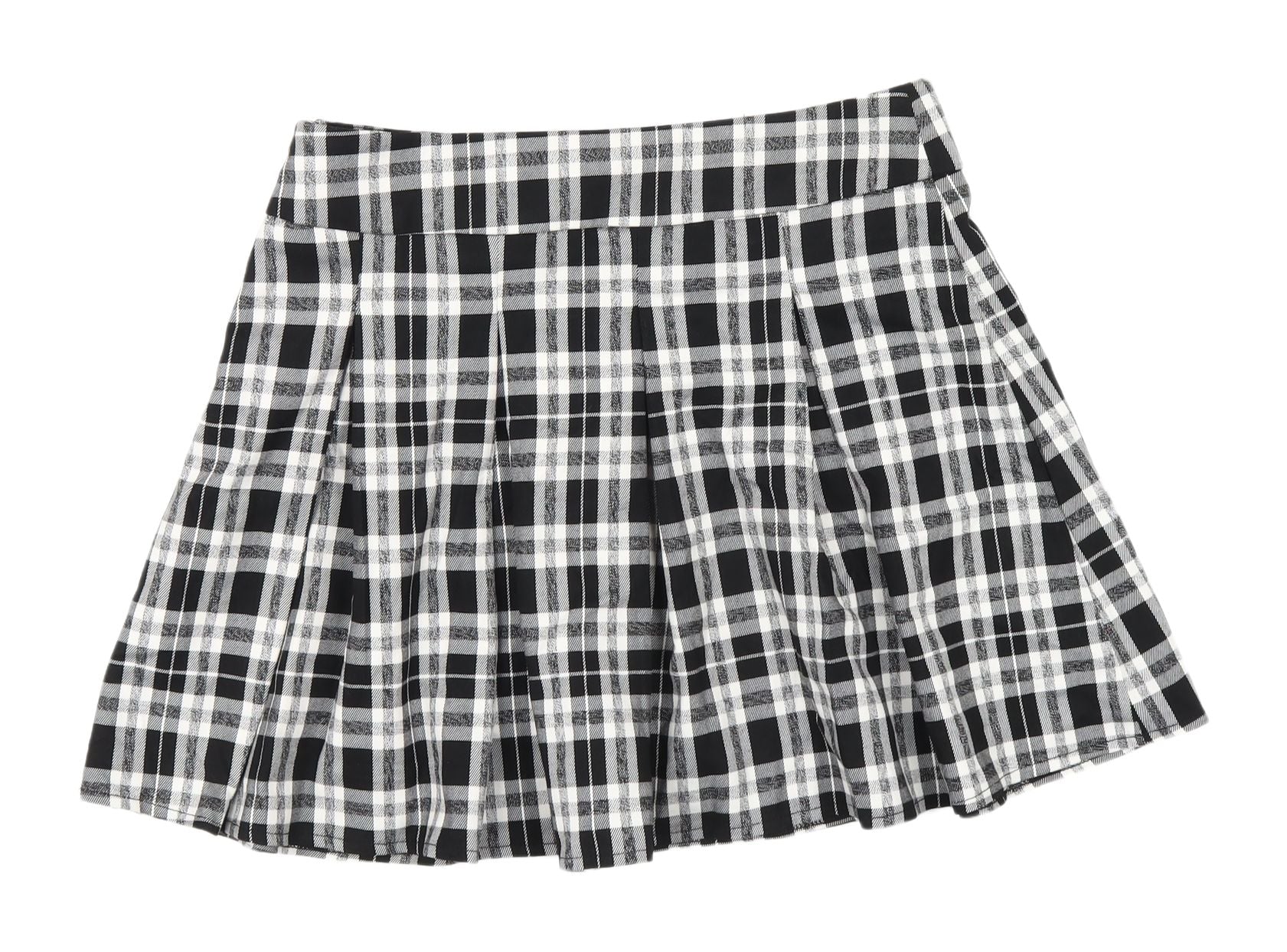 Girls Black Plaid Pleated Skirt, Size 12 Years