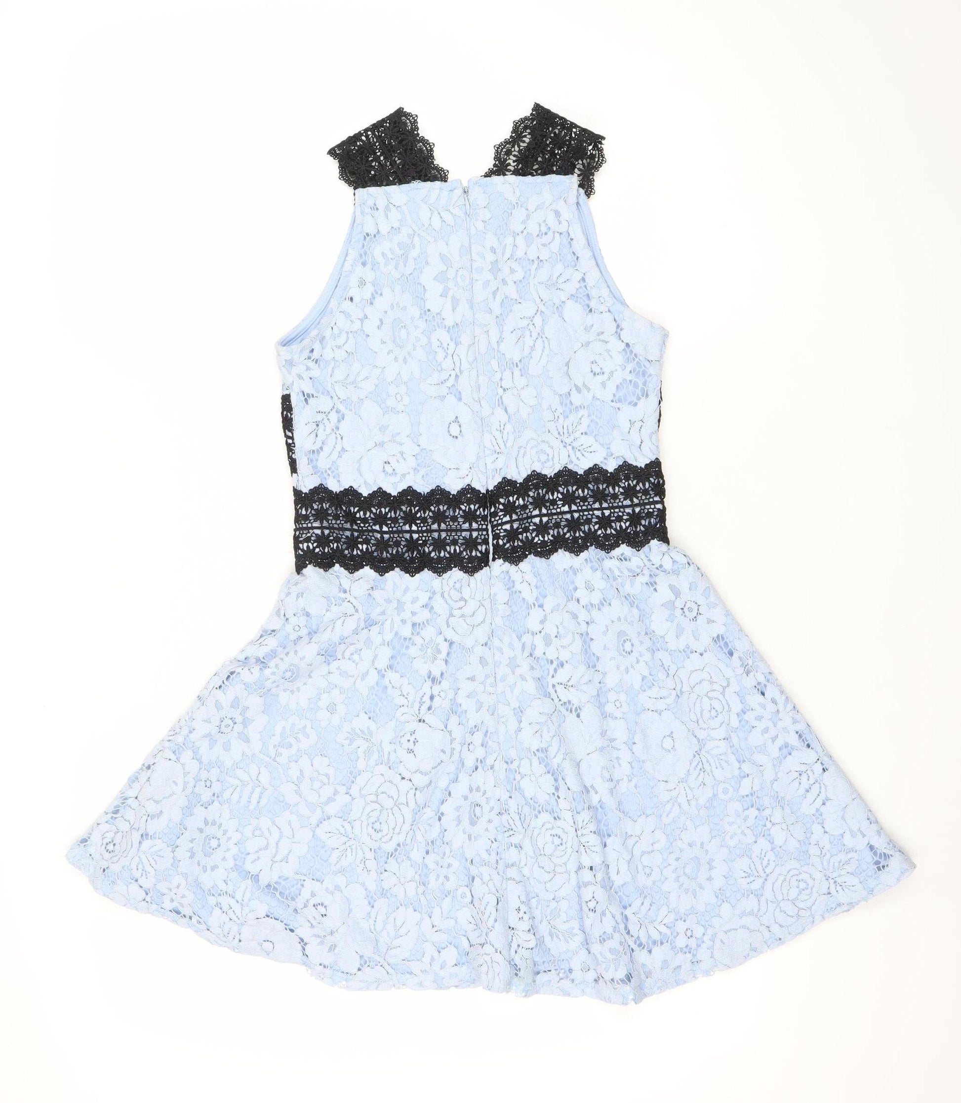 Girls Blue & Black Lace Skater Dress 11 Years Party Wedding