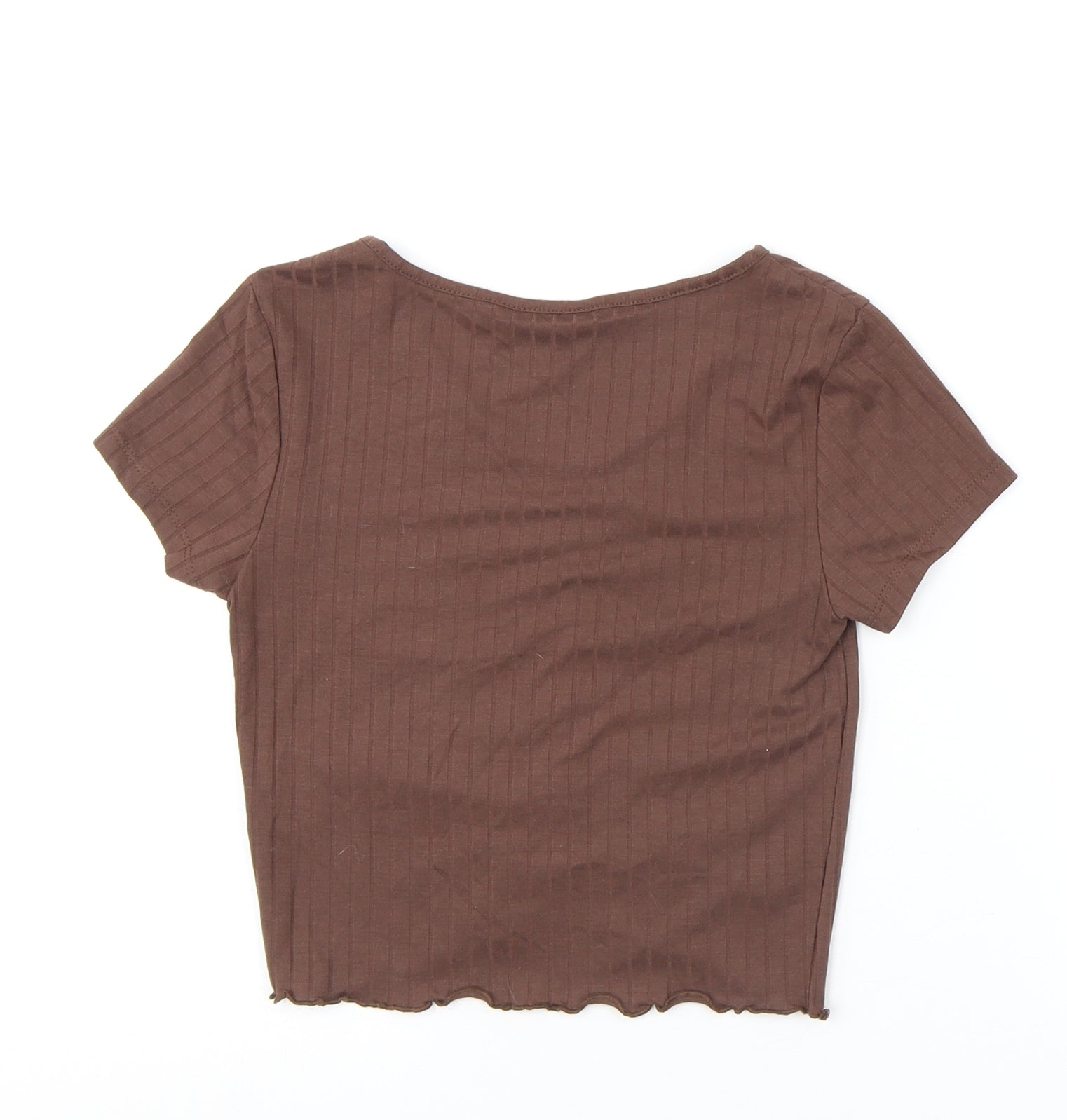 Girls Brown Polyester Basic T-Shirt Size 10-11 Years Round Neck Pullover