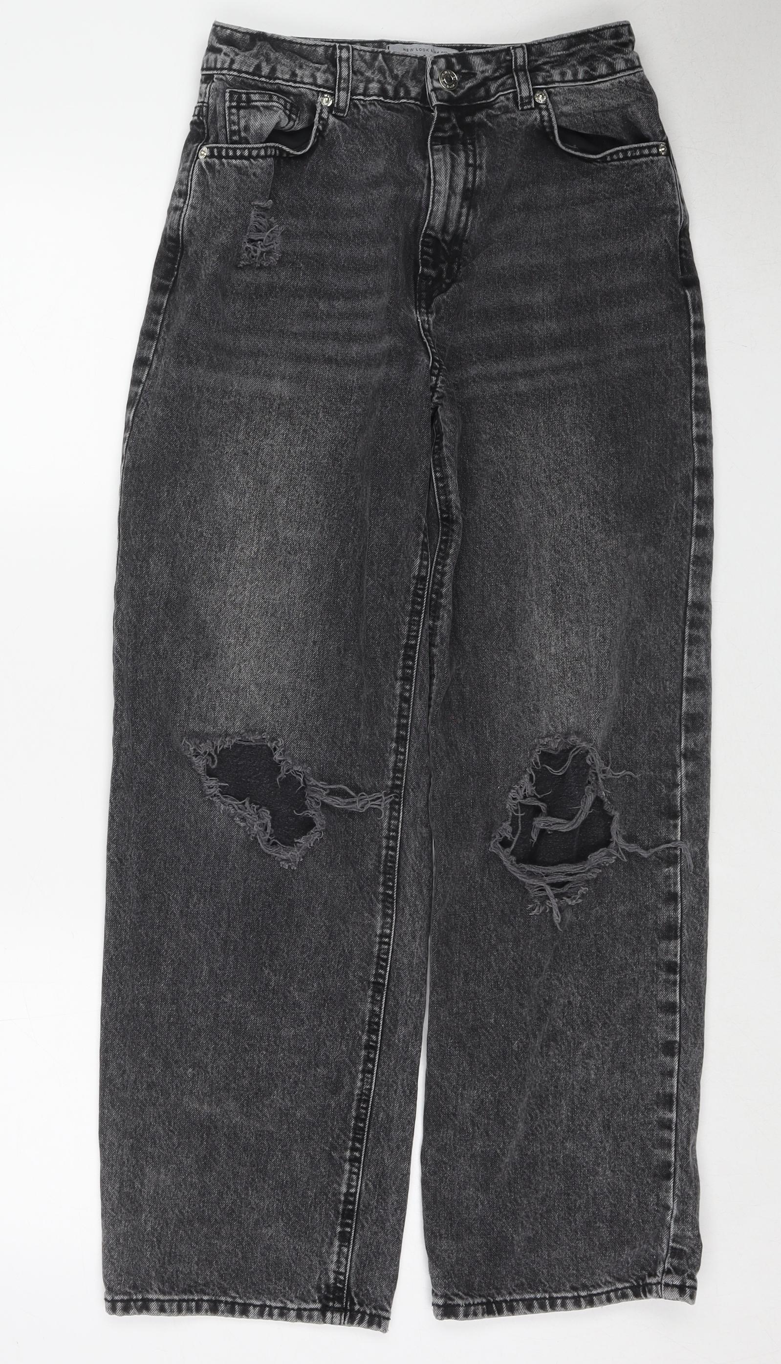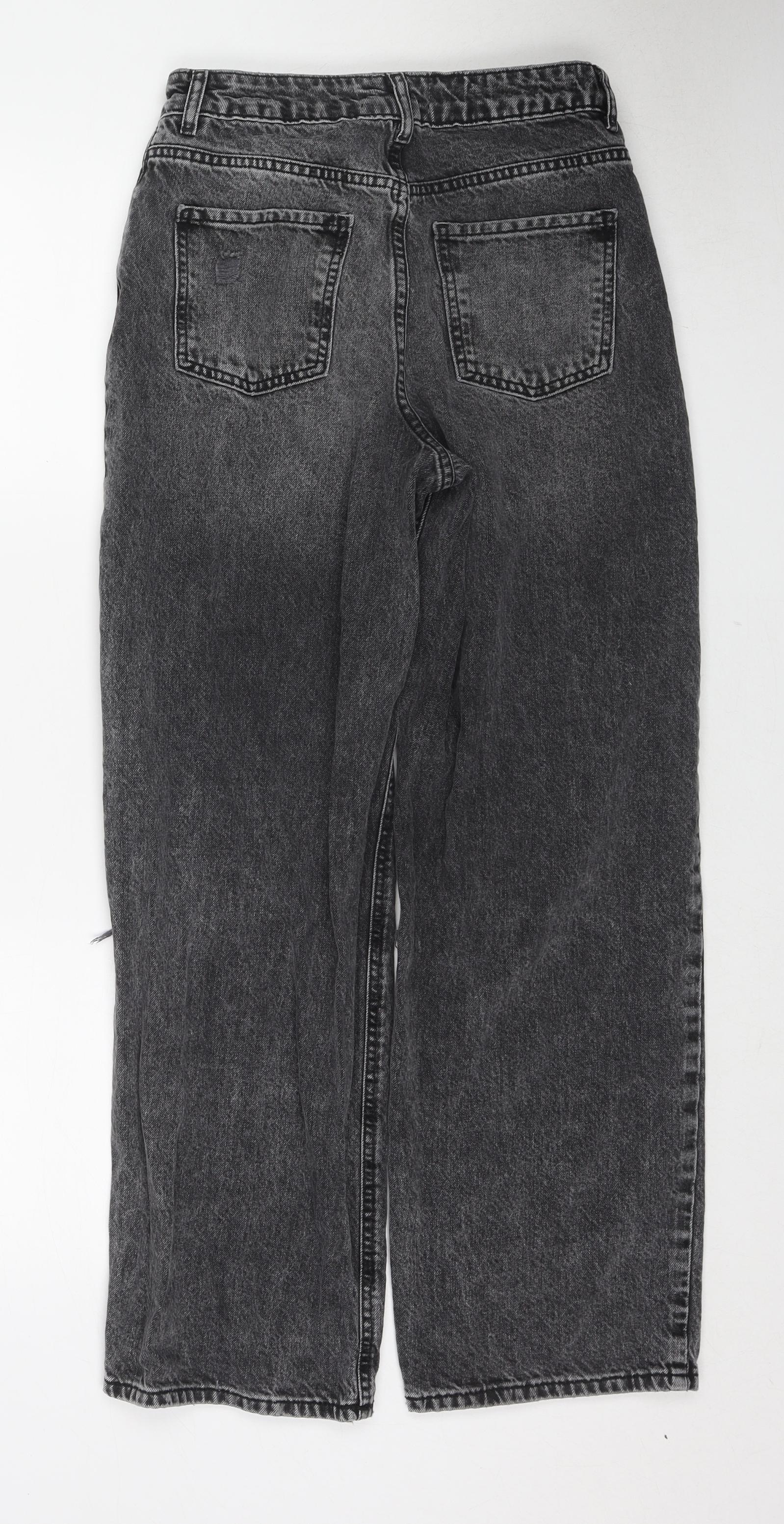 Girls Grey Cotton Wide-Leg Jeans Size 13 Years Regular Zip - Distressed