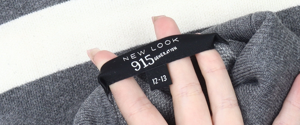 Elevate your little one's wardrobe with this chic grey pullover jumper from New Look's 915 Generation line. Designed specifically for young girls, this cozy jumper features a contemporary roll neck that adds a touch of sophistication while ensuring comfort. The classic striped pattern in a neutral grey shade makes it versatile for pairing with various outfits. Made from a soft blend of 69% viscose and 31% nylon, it promises a comfortable fit that's perfect for the cooler autumn and winter months. With machine washable care instructions, it’s also easy to maintain. Despite being pre-owned, it remains in excellent condition. Ideal for casual occasions, this jumper is a practical yet stylish addition to any young fashionista's collection. Whether worn to school or during playdates, this jumper effortlessly combines style and comfort. Get it now for just £10.00.