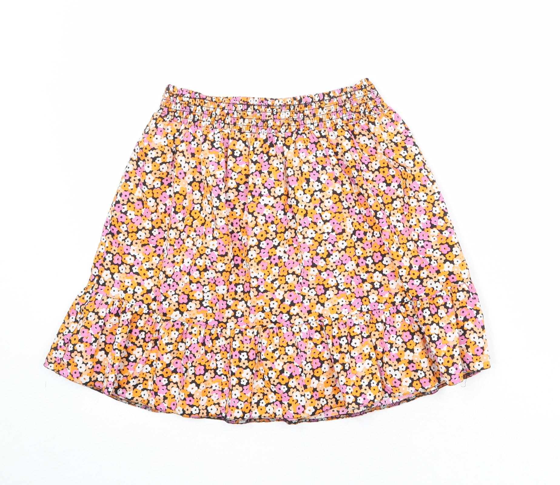 Girls Multicoloured Floral Polyester A-Line Skirt Size 13 Years Regular Pull On