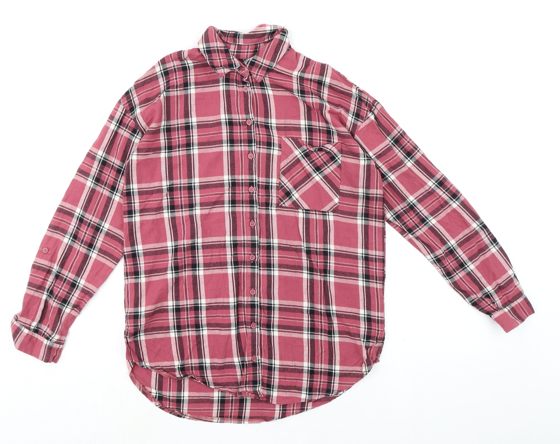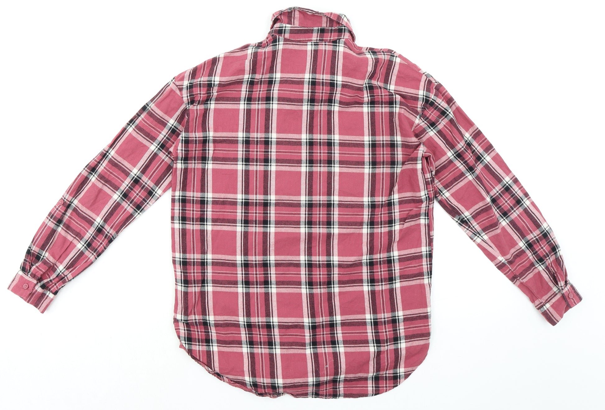 Girls Pink Plaid 100% Cotton Basic Button-Up Size 12 Years Collared Button