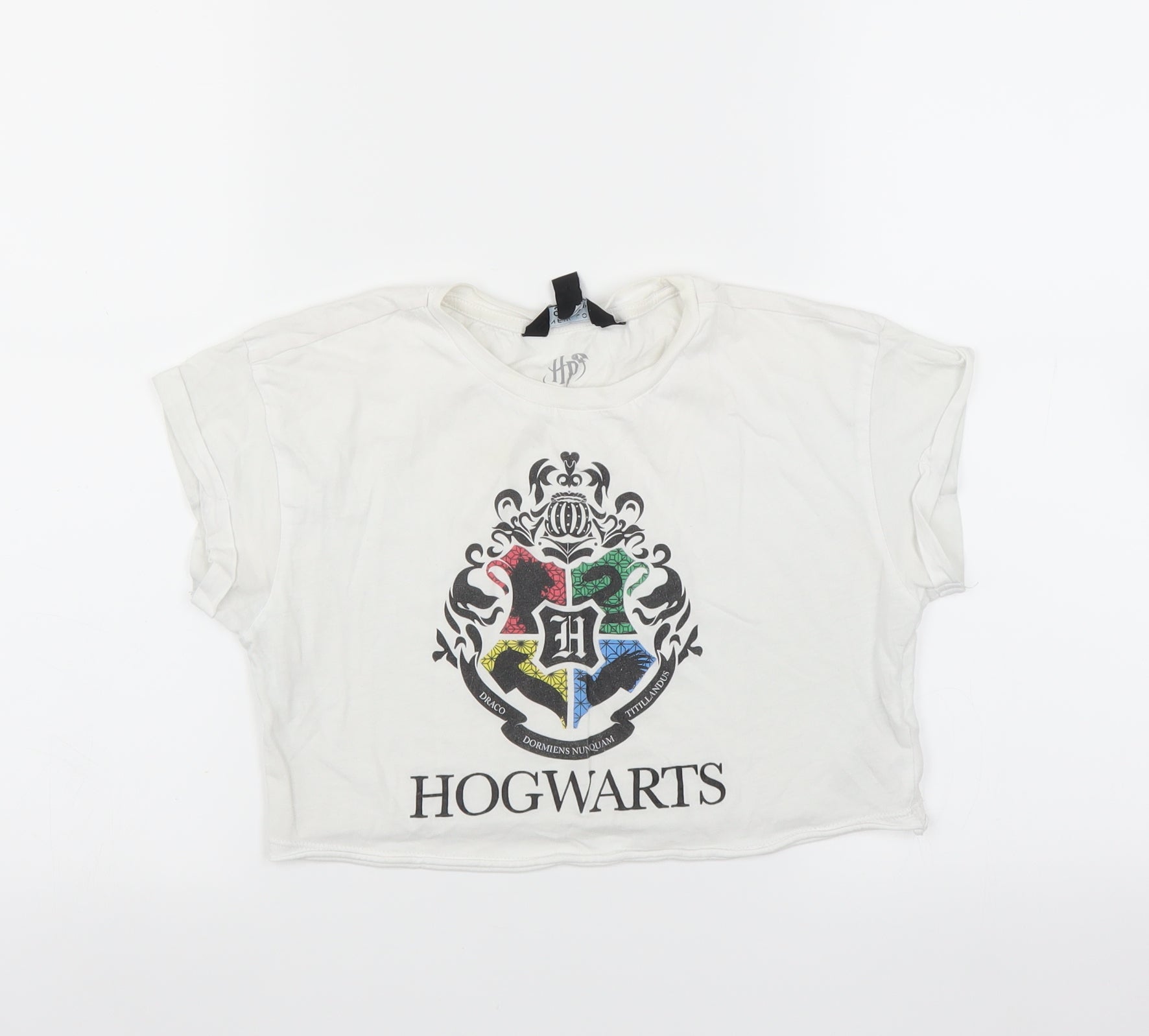 Girls White Cropped T-Shirt Size 9 Years - Harry Potter