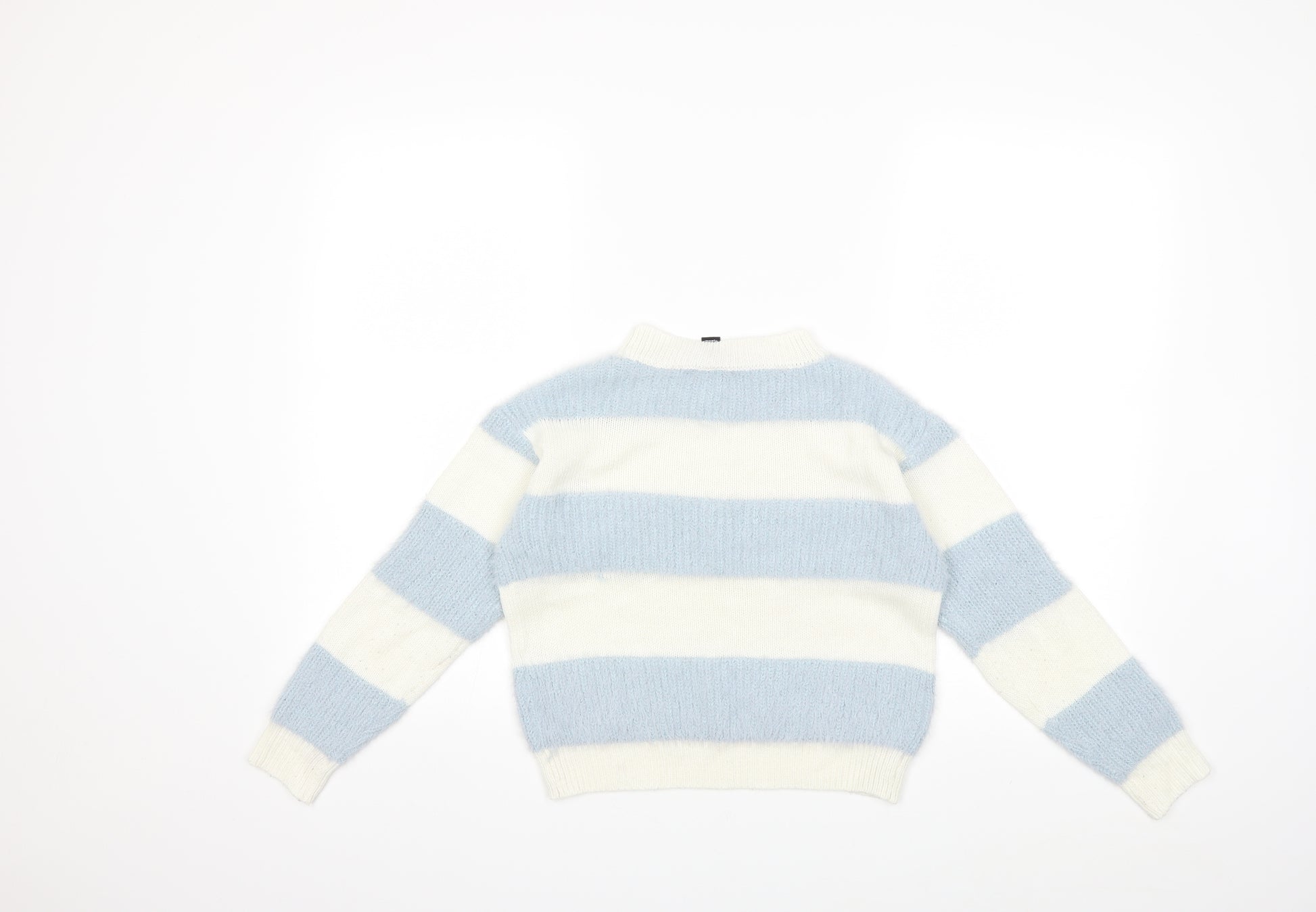 Girls White Striped Knit Pullover Jumper Size 9 Years