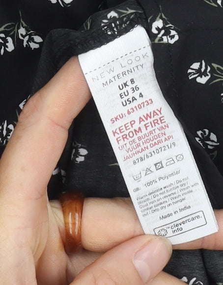 Maternity Dress, Black, UK 8, Floral Short Sleeve