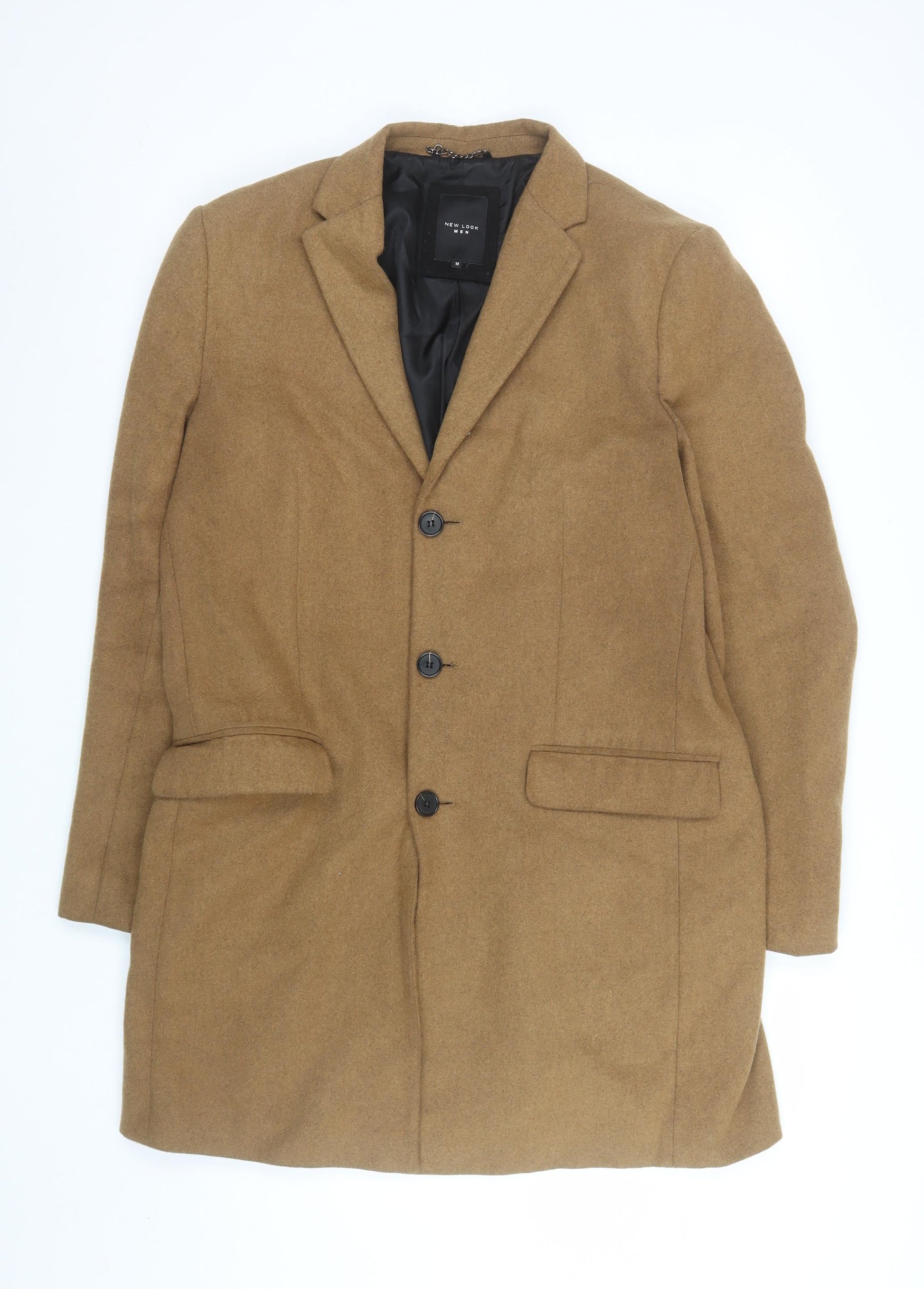 This refined New Look men's brown overcoat captures timeless style and sophistication, offering the perfect combination of warmth and elegance. Crafted from a high-quality wool blend consisting of 56% wool, 35% polyester, 4% nylon, 3% acrylic, and 2% viscose, this coat delivers a soft, structured feel with excellent durability. The tailored silhouette gives a polished and professional appearance, ideal for business, workwear, or smart casual settings. Designed as a mid-length coat in a versatile brown shade, it features a classic notch collar, three-button single-breasted closure, and front flap pockets that bring both function and style. The fully lined interior in 100% polyester enhances comfort and ease of wear during the cooler autumn and winter months. Subtle button accents on the front and sleeves add classic charm. Its regular fit ensures a flattering, comfortable wear over shirts or knitwear, making it a wardrobe essential for transitional and cold-weather dressing. The high-quality finish and timeless design make this coat a versatile outerwear piece that can be dressed up for formal occasions or paired with jeans for an elevated weekend look. In excellent pre-owned condition, showing only minimal signs of wear and no visible damage, this coat represents a stylish, affordable choice for men seeking reliability and sophistication. Whether worn as part of a tailored ensemble or for smart day-to-day use, this New Look men's wool blend coat embodies understated confidence and effortless elegance, ideal for modern city living.