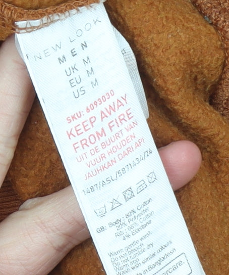 Elevate your casual wardrobe with this stylish New Look men’s sweatshirt in a rich brown shade. Designed in a classic pullover style, this medium-sized sweatshirt offers a timeless appeal that pairs perfectly with jeans or joggers for effortless everyday comfort. Made from a soft cotton and polyester blend fleece fabric, it’s designed to keep you cosy throughout cooler days while remaining breathable and lightweight enough for layering in any season. The crew neckline, long sleeves, and ribbed cuffs and hem ensure a comfortable and snug fit that flatters every shape.Constructed for regular wear, this sweatshirt maintains its shape and softness even after washing, making it a reliable piece in your wardrobe. The simplicity of the design makes it versatile for multiple occasions, from lounging at home to casual outings or weekend errands. The warm brown tone adds a touch of earthy elegance to your outfit, subtly standing out while remaining easy to match with neutral or denim fabrics.Perfectly suited for autumn, winter, and spring, this sweatshirt embodies comfort and style in equal measure. Whether layered under a jacket on brisk days or worn solo for a relaxed look, it’s a dependable essential that every man needs. Machine washable for easy care, it offers practicality as well as fashion appeal.This pre-owned sweatshirt is in excellent condition, showing minimal signs of wear and maintaining a soft fleece inner. Its simple, no-pattern design gives it a timeless look that never goes out of style, ensuring you’ll reach for it season after season. Add this New Look brown pullover sweatshirt to your collection for a go-to piece that combines warmth, versatility, and modern casual flair all in one.Ideal for those seeking understated everyday wear, this sweatshirt delivers effortless style and comfort, embodying classic New Look quality at an excellent value.