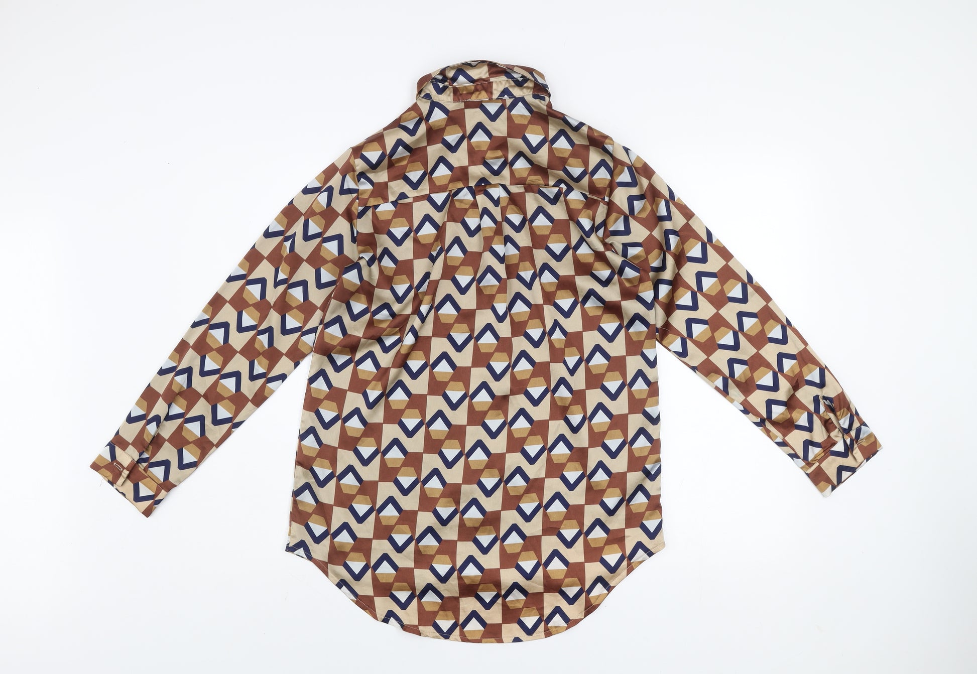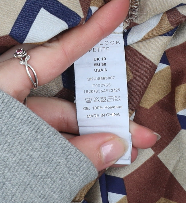 Petite Women’s Brown Geometric Button-Up Shirt UK 10