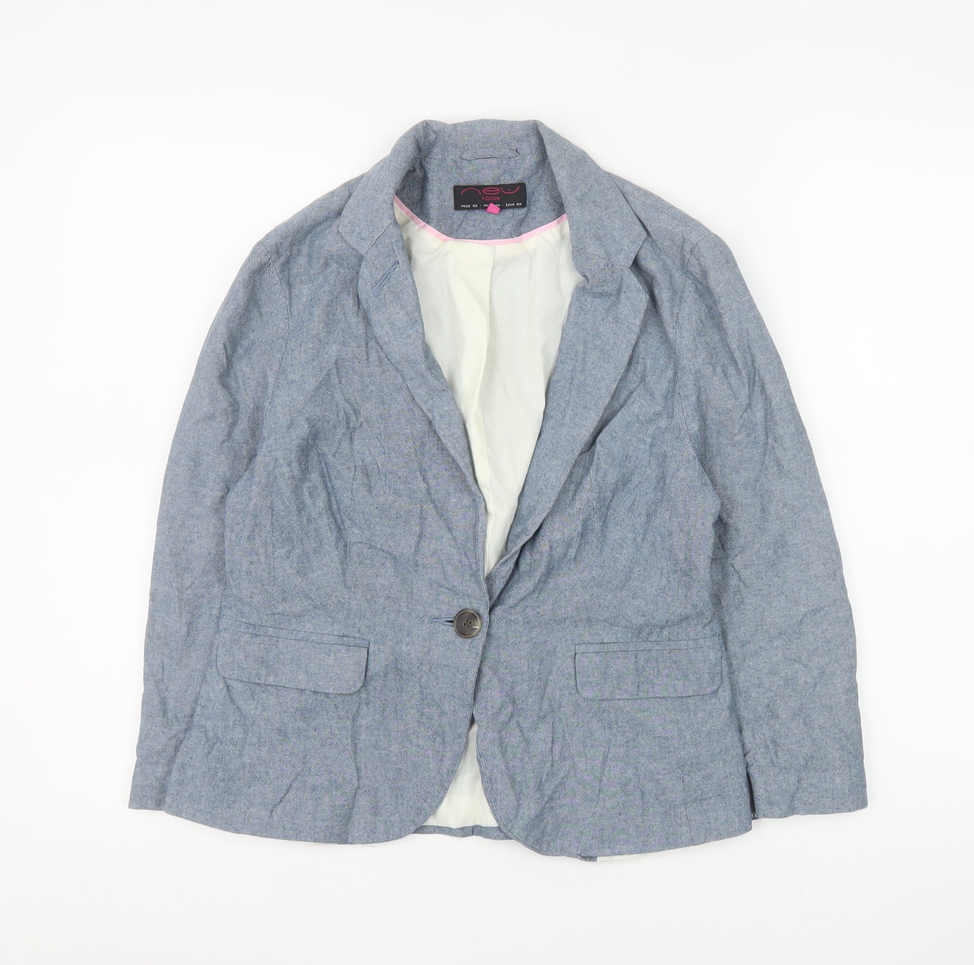 Women Blue Cotton Single-Breasted Blazer Size 12