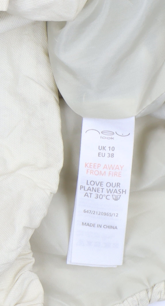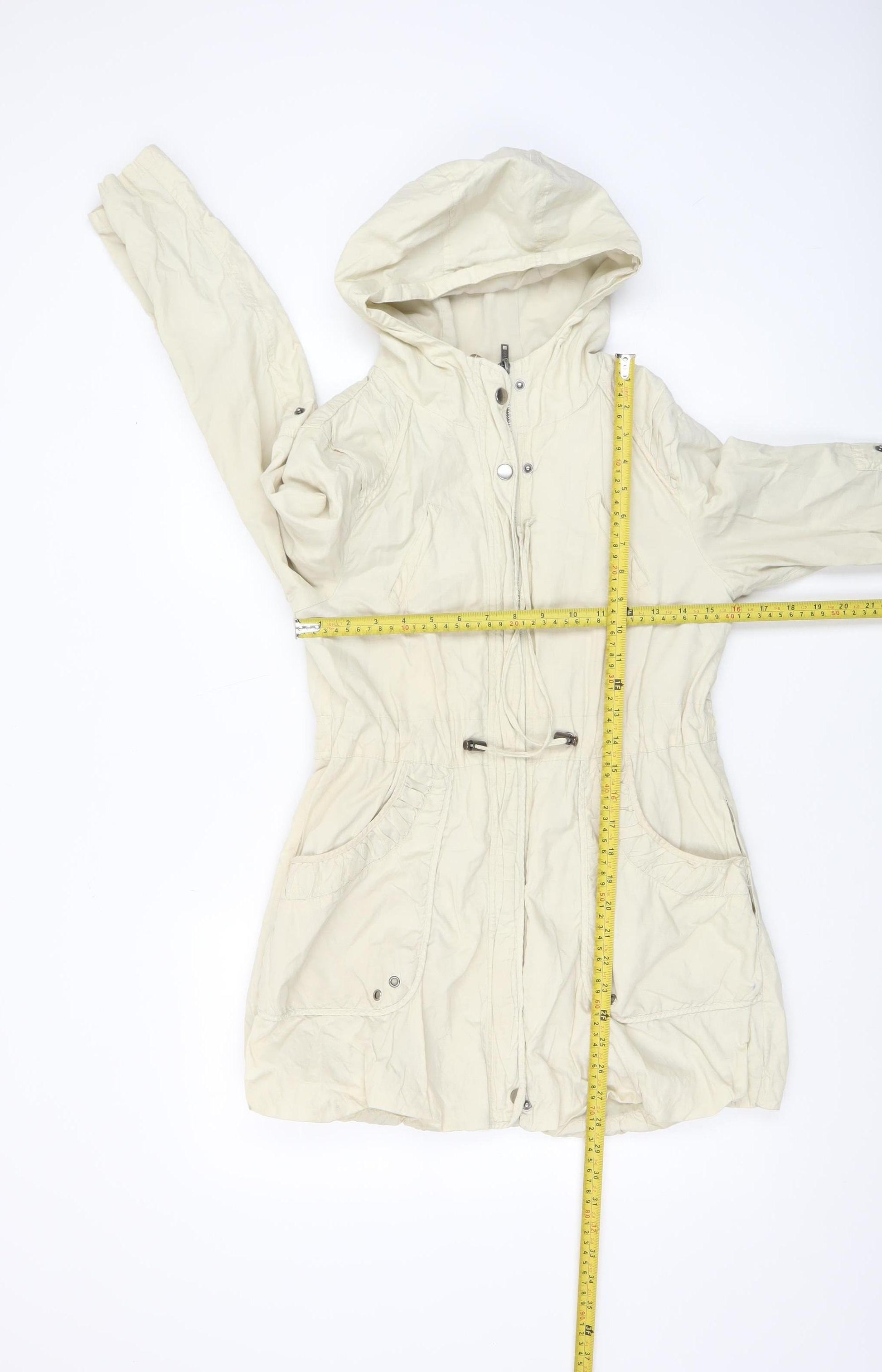 Women’s Beige Hooded Parka Jacket UK 10 Drawstring Waist