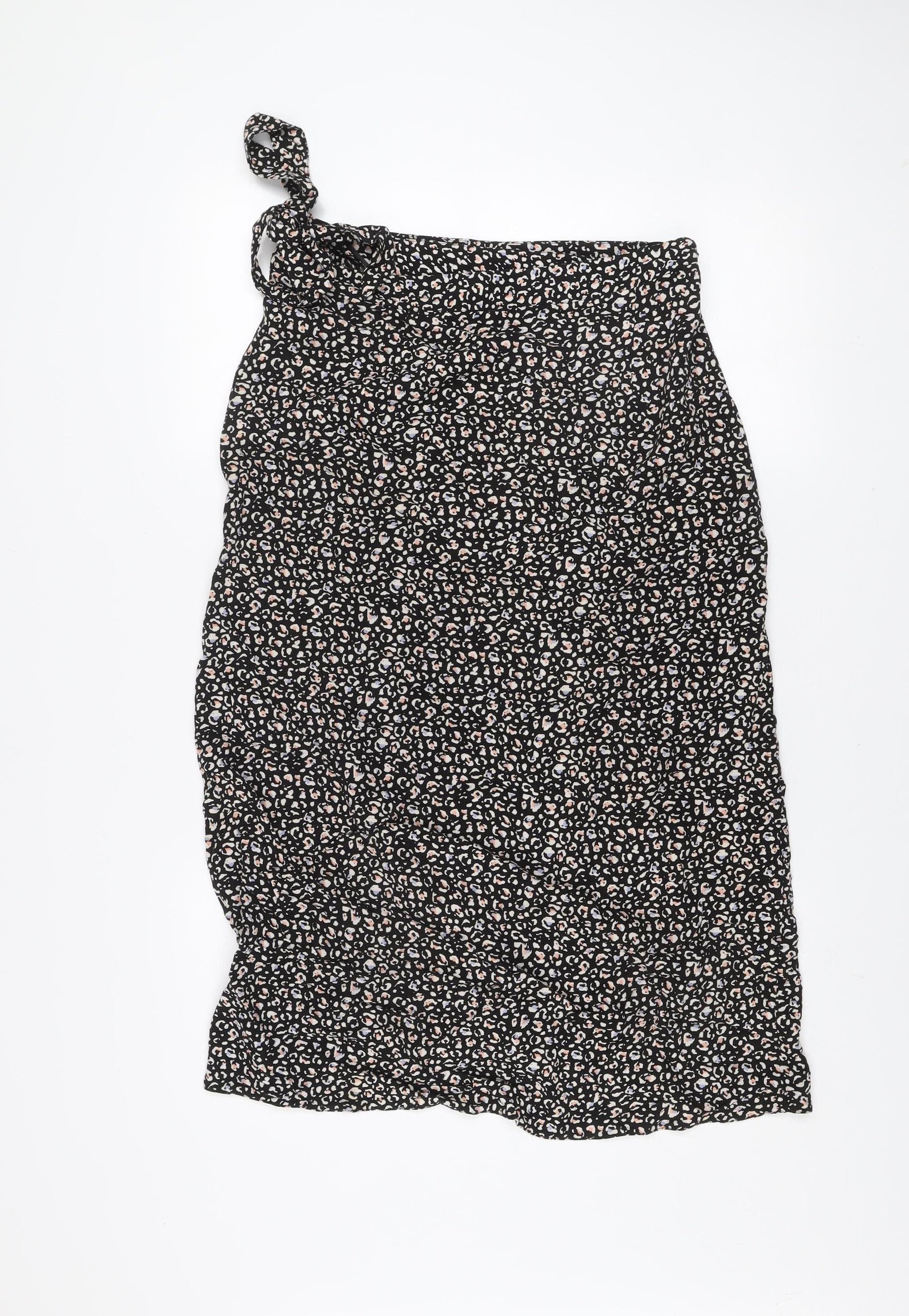 Women’s Black Leopard Print Wrap Midi Skirt Size 12