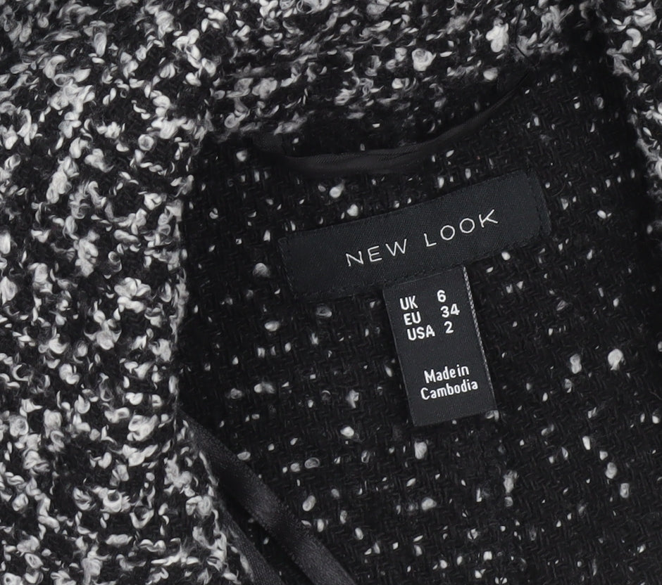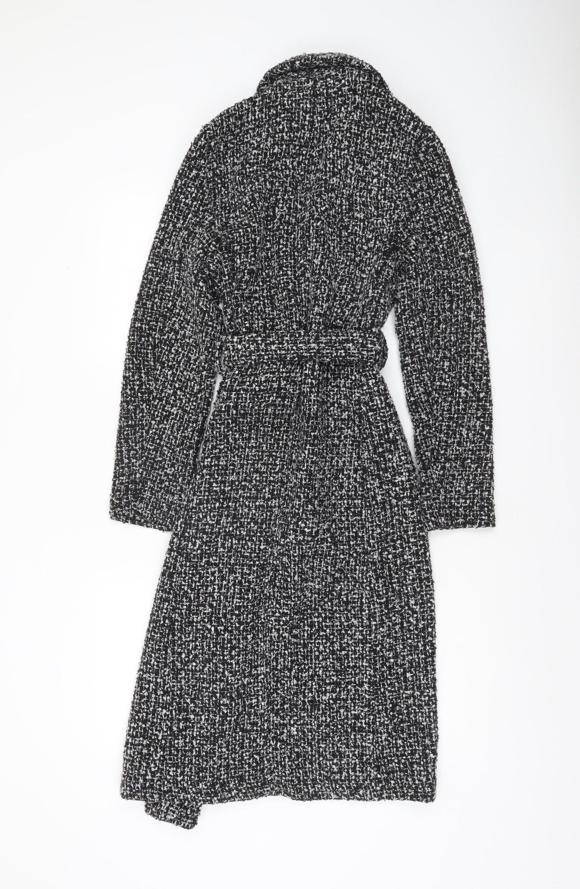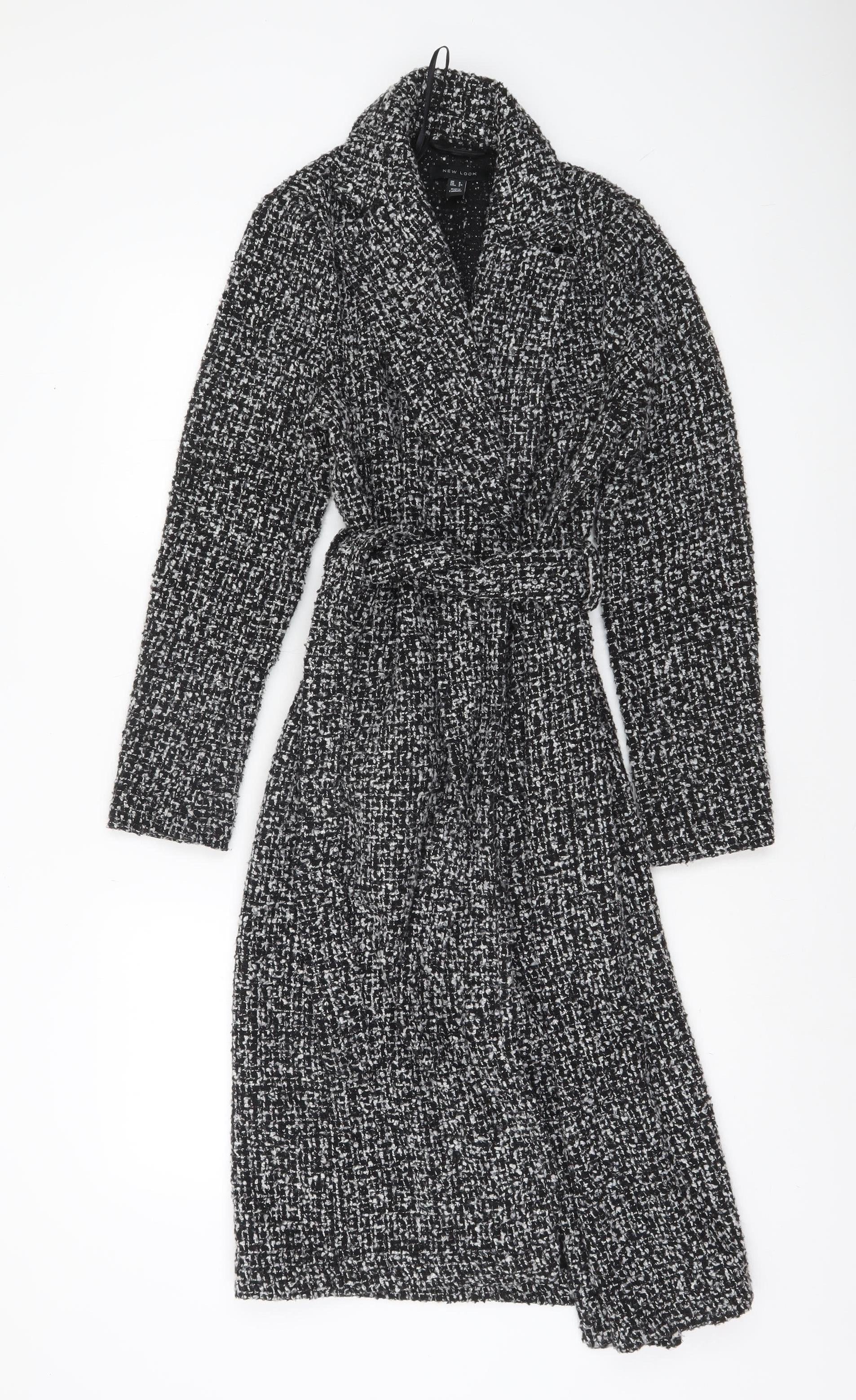 Step into timeless elegance with this sophisticated New Look women's black tweed belted coat. Crafted from a soft and textured wool-blend tweed fabric, this long coat offers both warmth and style, perfect for cooler autumn and winter days. The classic black and white weave adds a refined touch, making it a versatile addition to any wardrobe. Designed with a regular fit, the coat features a flattering tie belt at the waist, allowing you to adjust the silhouette to your preference. The wide lapel collar gives it a structured look, while its fully lined interior ensures comfort throughout the day. This piece embodies effortless chic — pair it with smart office wear for a polished business look or layer it over jeans and boots for weekend outings. The material combination of polyester and wool provides a cosy feel with excellent durability, and its dry-clean-only care ensures it retains its quality over time. Suitable for both casual and workwear occasions, this long tweed overcoat is the epitome of understated sophistication. Ideal for layering, its versatile shade complements nearly any outfit, making it a go-to staple for transitional seasons. Whether you’re heading to the office, an evening event, or strolling through the city, this coat offers both comfort and classic flair. In excellent pre-loved condition with no visible flaws, this coat promises many more seasons of wear. Own an enduring style statement that blends modern design with timeless tailoring in this beautiful New Look women’s long wool blend coat.