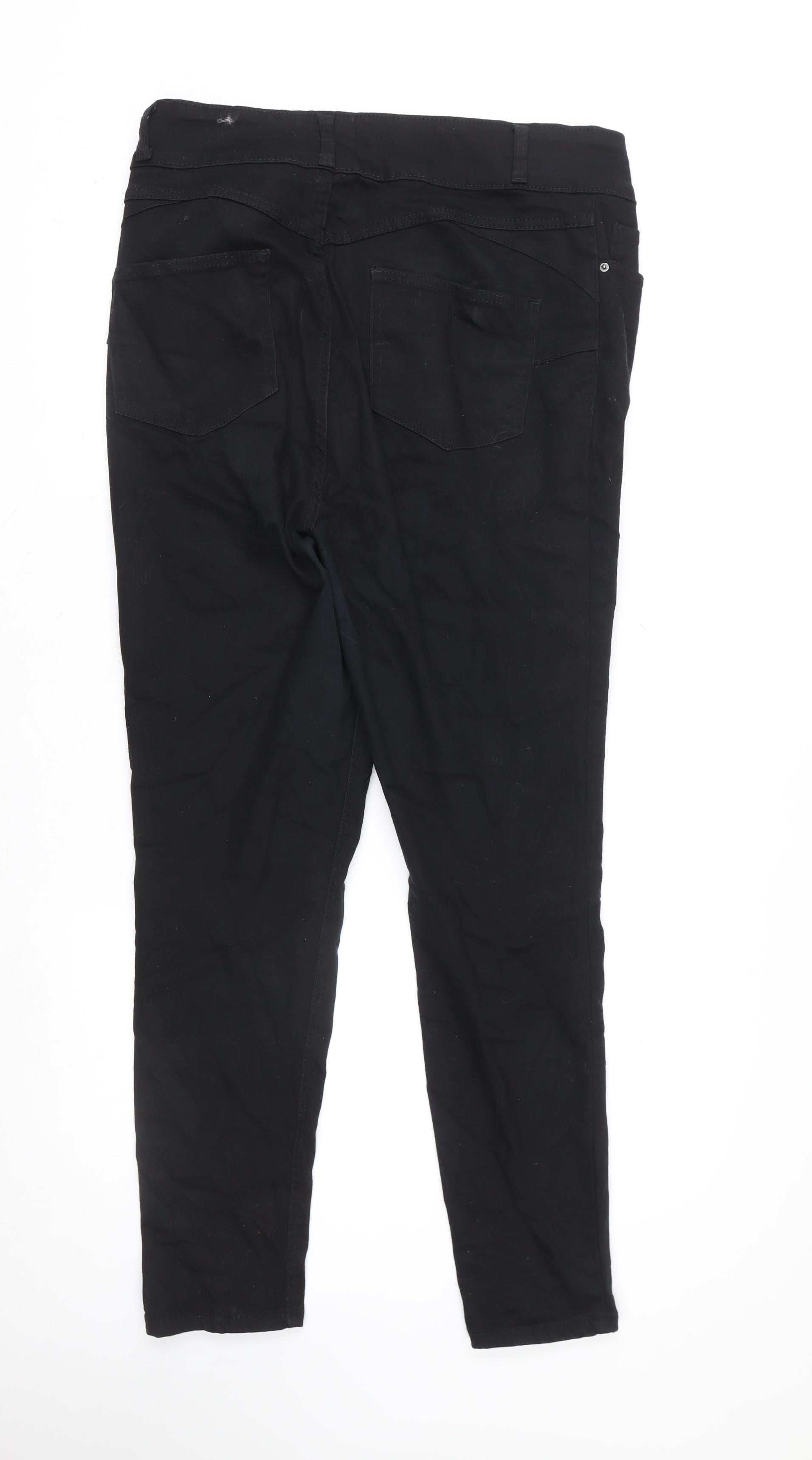 Step into effortless style and comfort with these New Look Yazmin high-waist skinny jeans, designed especially for women who love a sculpted, flattering fit. Expertly crafted from a soft yet resilient blend of cotton, polyester, and elastane, these jeans provide stretch for all-day ease while maintaining their shape. The high-rise waistline enhances your silhouette and offers comfortable coverage, making these jeans a versatile staple for both casual and dressed-up looks.Featuring a sleek black finish, they’re easy to pair with nearly anything in your wardrobe—from a crisp white shirt and blazer to a relaxed jumper or crisp T-shirt. The classic five-pocket design combines practicality with timeless denim style, while the zip and button closure ensure a secure and streamlined fit. The Yazmin cut is known for its curve-loving tailoring, part of the New Look “Kind Curves” range, making them ideal for those who want both comfort and confidence in their jeans.Made for everyday wear, these jeans are machine washable and easy to care for, perfect for fast-paced modern life. The premium fabric composition of 70% cotton, 27% polyester, and 3% elastane means you get the best of softness, durability, and stretch. In excellent used condition with minimal signs of wear, these jeans still look chic and ready to impress. Whether styled with ankle boots for autumn or sleek heels for a night out, the versatile black tone transitions effortlessly between seasons and occasions.Perfect for cooler weather but still breathable enough for milder spring days, these Yazmin jeans deliver the ideal balance between fashion and function. Add this wardrobe essential to your collection today for a timeless look that never goes out of style.