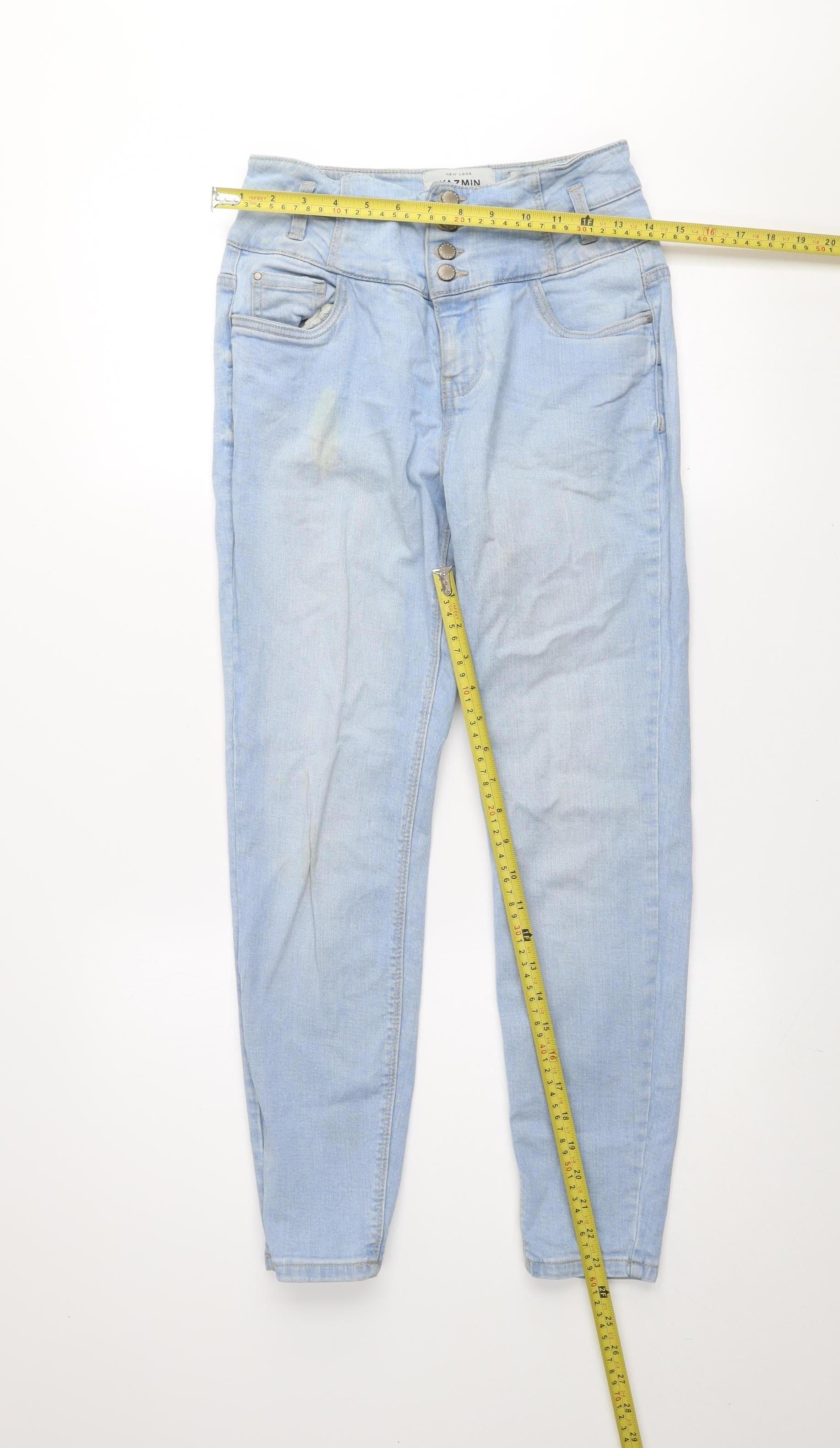 Step out confidently in these stylish New Look Yazmin High Waist Skinny Jeans, perfect for everyday wear or a casual weekend look. Crafted from a soft and stretchy denim blend of 99% cotton and 1% elastane, these jeans offer comfort without compromising on shape. The light blue wash gives a laid-back, contemporary vibe, making them an easy match with both relaxed T-shirts and crisp blouses. The high-rise design sits comfortably at the waist, enhancing your natural silhouette while providing great coverage. The classic five-pocket styling and button fastening add timeless denim detailing. Lightweight and breathable, they’re versatile for all seasons, especially spring through autumn. These jeans have a flattering slim fit and a skinny leg cut that elongates the look of your legs. Ideal for women looking for that perfect blend of comfort, stretch, and chic everyday style. Although in good used condition, there is a faint mark near one of the front pockets as shown, which doesn’t detract from their overall stylish appearance. Perfect for pairing with trainers, sandals, or boots, these jeans offer a wearable and flattering addition to any casual wardrobe. Whether you’re running errands, catching up with friends, or relaxing at home, these New Look jeans will give you an effortlessly put-together look while keeping you comfortable all day long.