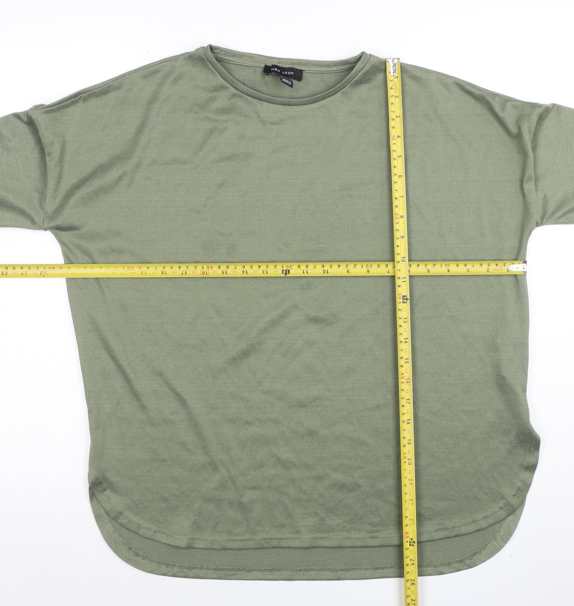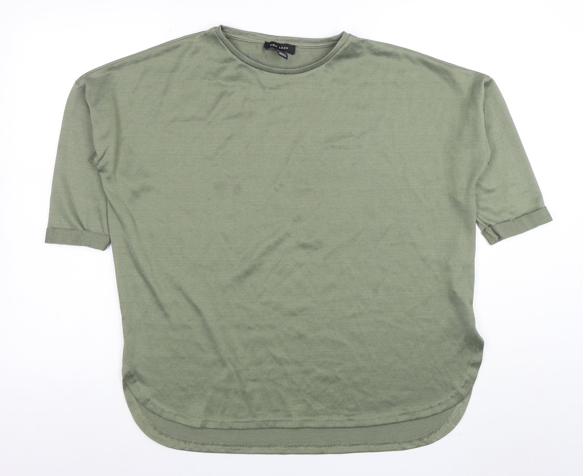 This classic New Look women’s green T-shirt offers simple yet stylish comfort, perfect for versatile everyday wear. Designed in a soft jersey fabric, it’s cut from a lightweight blend of viscose and elastane, giving it a naturally breathable stretch fit that feels smooth against the skin. The short sleeves and relaxed silhouette lend an easy, flattering shape ideal for layering or wearing alone. A timeless crew neckline gives this piece a clean, effortless look suitable for pairing with jeans, joggers or skirts.In a fresh green shade that complements all skin tones, this top brings an understated pop of colour to your wardrobe. The soft drape of the viscose jersey allows the fabric to move naturally, while the elastane adds structure and flexibility, ensuring comfort throughout the day. Finished neatly with slightly rolled cuffs and a curved hemline, it embodies minimal, everyday chic.A wardrobe staple for casual moments, weekend outings, or laid-back office days, this New Look T-shirt is designed to be your go-to piece for comfort and simplicity. Perfect for spring through autumn, it offers an easy-care, machine washable fabric that maintains its quality and shape. In excellent pre-owned condition with only light signs of gentle wear, this T-shirt still holds its softness and colour beautifully.A versatile addition that pairs effortlessly with denim, shorts, or layered under a blazer, this top from New Look embodies easy British street style with an emphasis on comfort. Ideal for women looking for a casual, stylish basic that can transition between home, errands, and social occasions alike. Style it tucked in for a refined finish or let it hang loose for a more relaxed feel — the choice is yours.