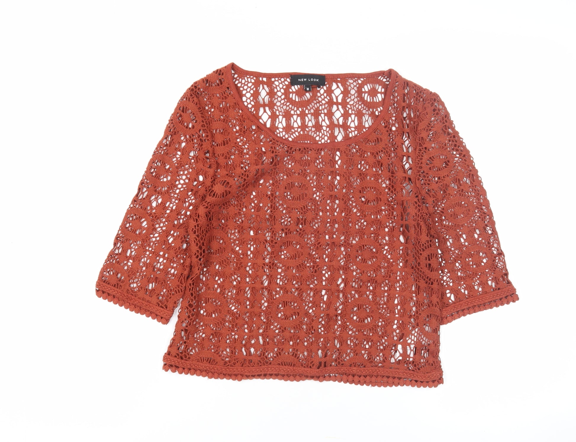 Add a touch of elegance to your wardrobe with this delightful New Look Women's Orange Crochet Pullover. This size 10 jumper, featuring a sophisticated open-knit design, is perfect for those looking to combine style and comfort. Its vibrant orange hue is sure to brighten up any outfit, making it an ideal choice for spring and summer occasions. The scoop neckline and 3/4 sleeve length give it a chic look, while the 100% cotton material ensures breathability and comfort. Perfectly suited for casual outings, this regular fit jumper will undoubtedly become a staple in your collection. Don't miss the chance to own this beautiful garment that seamlessly blends quality with style.