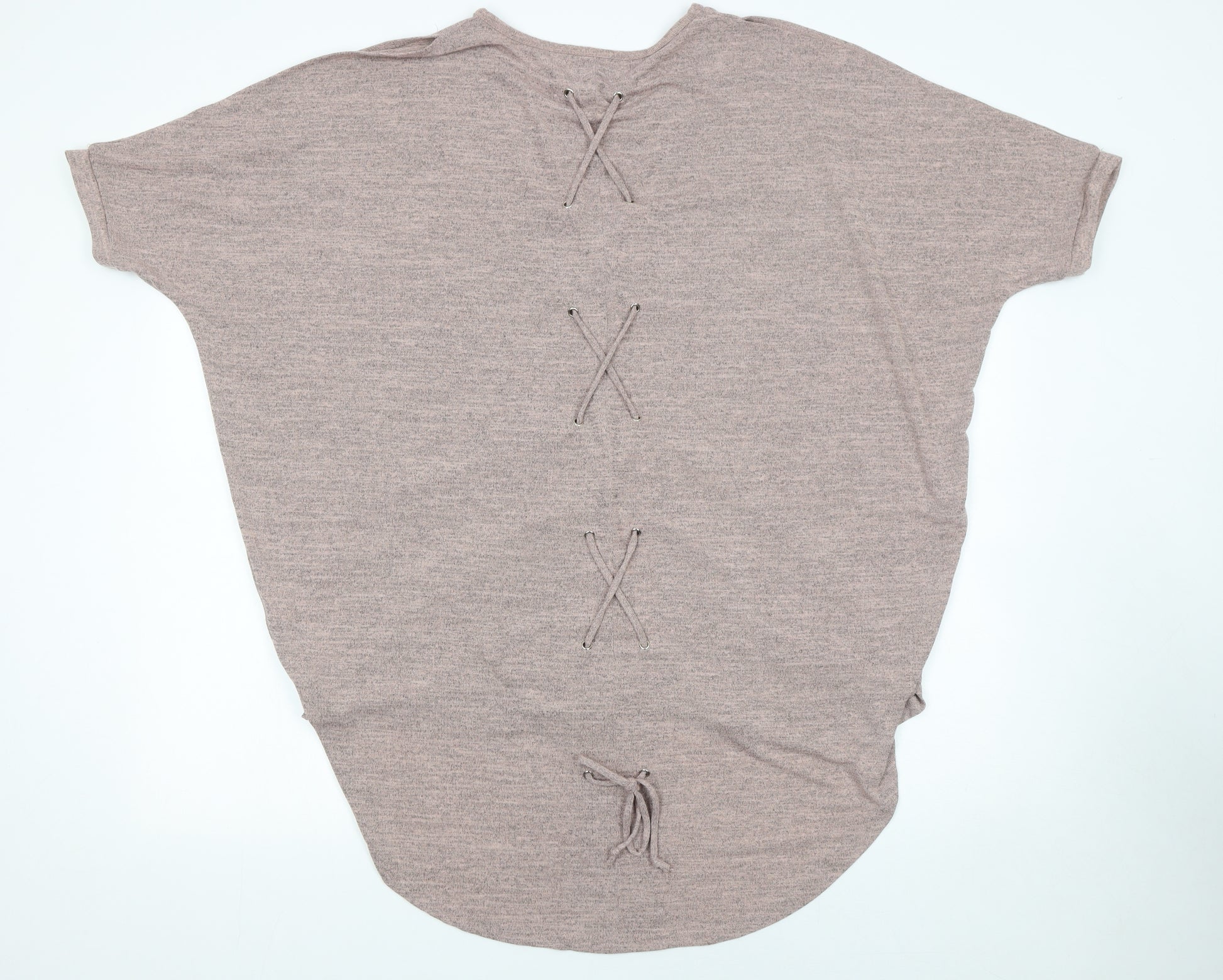 Womens Beige Knit Lace-Up Back Short Sleeve Jumper L