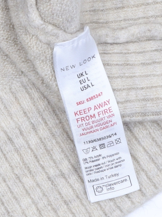 Women's Beige L Chunky Knit Crew Neck Pullover Jumper