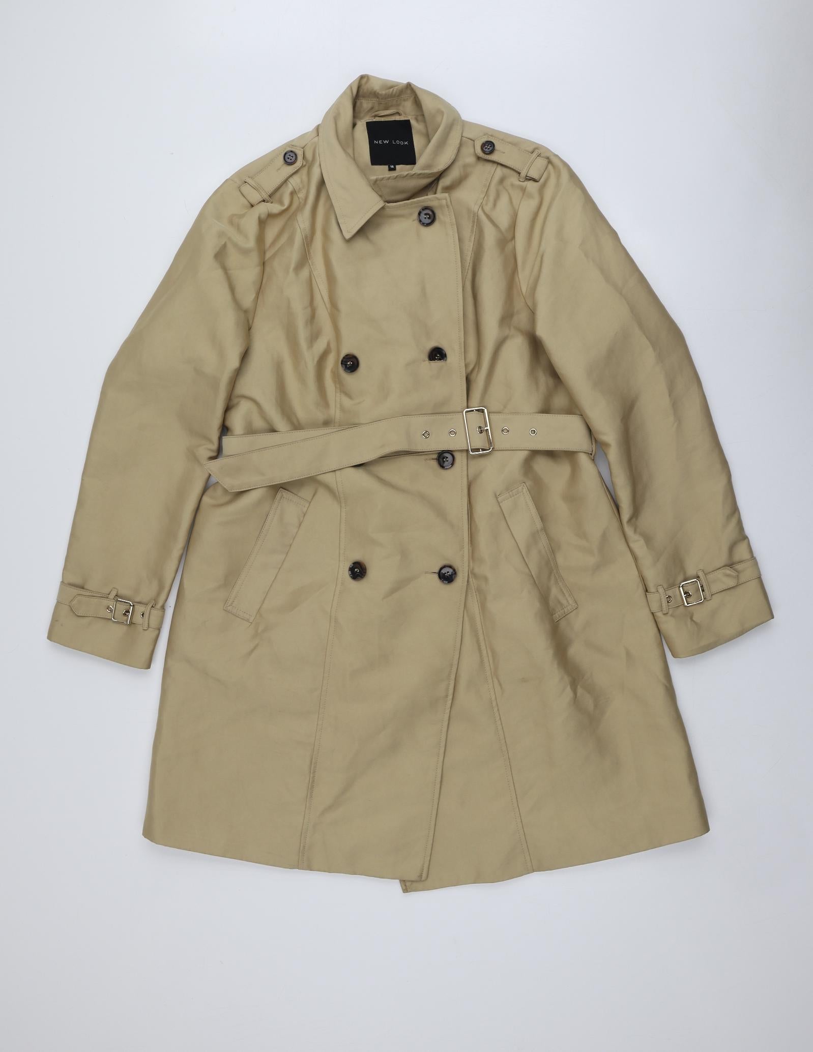 Marks and Spencer Women Beige Long Overcoat Size 16 Polyester