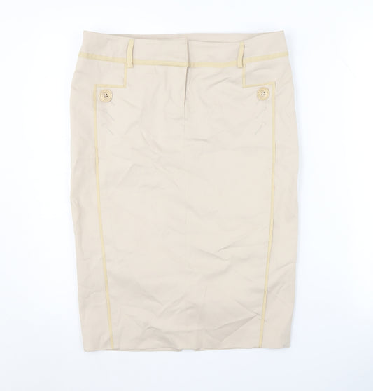 Step out in style with this chic beige pencil skirt from New Look, perfect for any casual occasion. Crafted with a flattering high-rise fit and knee-length cut, this skirt enhances your silhouette effortlessly. Made from durable polyester in a soft twill fabric, it features stylish button accents that add a touch of sophistication. Its versatile shade and classic style make it an ideal addition to your spring and summer wardrobe. Pair it with your favourite top for a polished look. Easy to care for, simply toss it in the washing machine for a fresh wear. A must-have for those who love timeless fashion.
