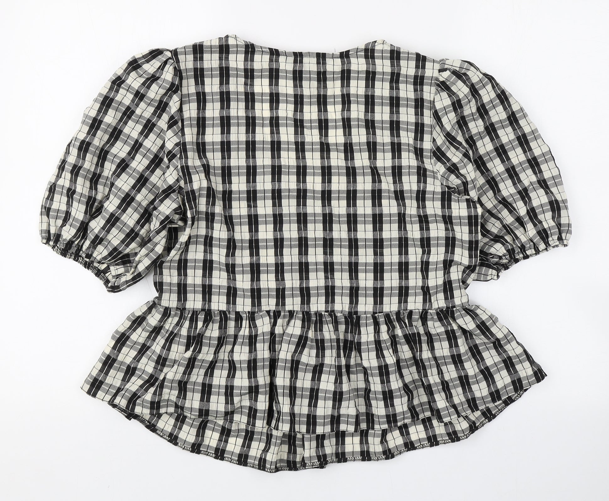 Womens Beige Plaid Polyester Basic Blouse Size 14 V-Neck
