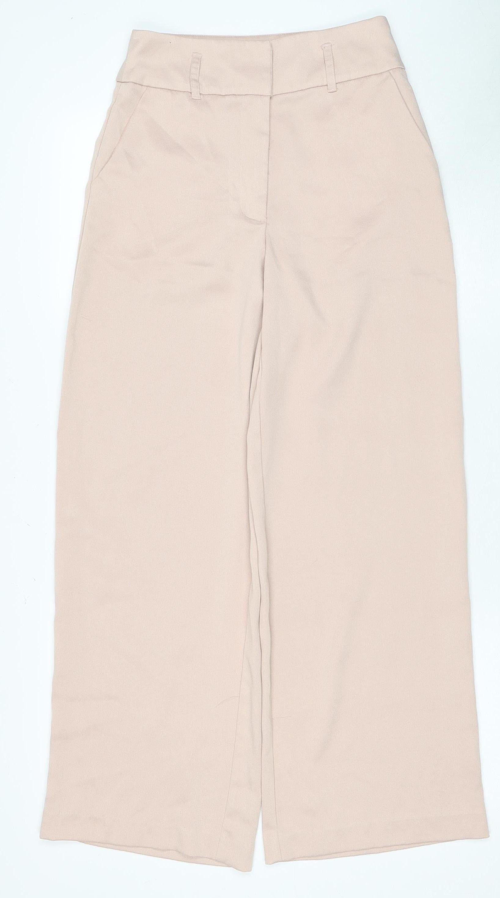 Step into casual elegance with these New Look Women's Beige Wide-Leg Trousers, perfect for any season. Crafted from soft yet durable polyester, they offer a flattering flat front and a versatile wide-leg cut. Ideal for multiple occasions, from casual outings to more refined gatherings, these trousers feature a timeless beige hue, ensuring they're both on-trend and classic. Being machine washable, they promise easy care, maintaining their quality over time. Although pre-loved, they remain in excellent condition, free from noticeable wear or tear, ready to become a staple in your wardrobe. Pair them with a simple top for a relaxed look or dress them up with a blouse for a chic, sophisticated style.
