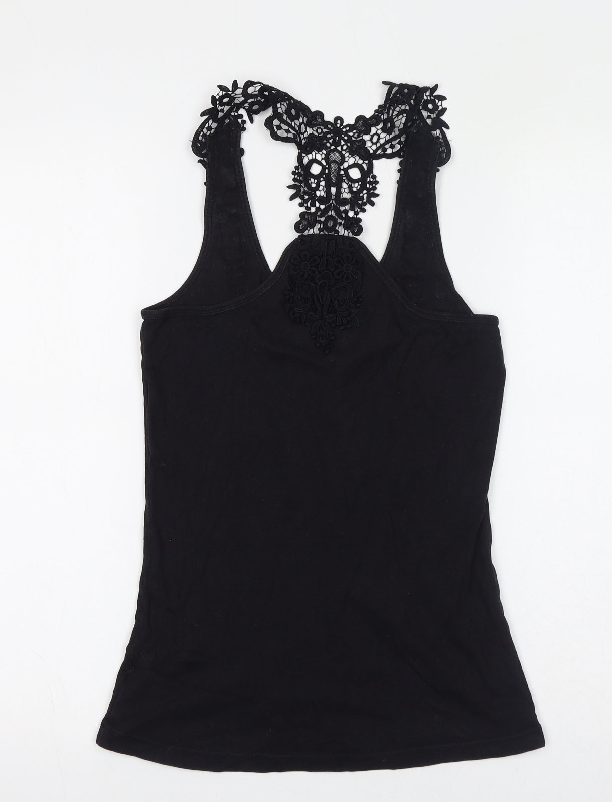 Womens Black 100% Cotton Basic Tank Size 12 Scoop Neck