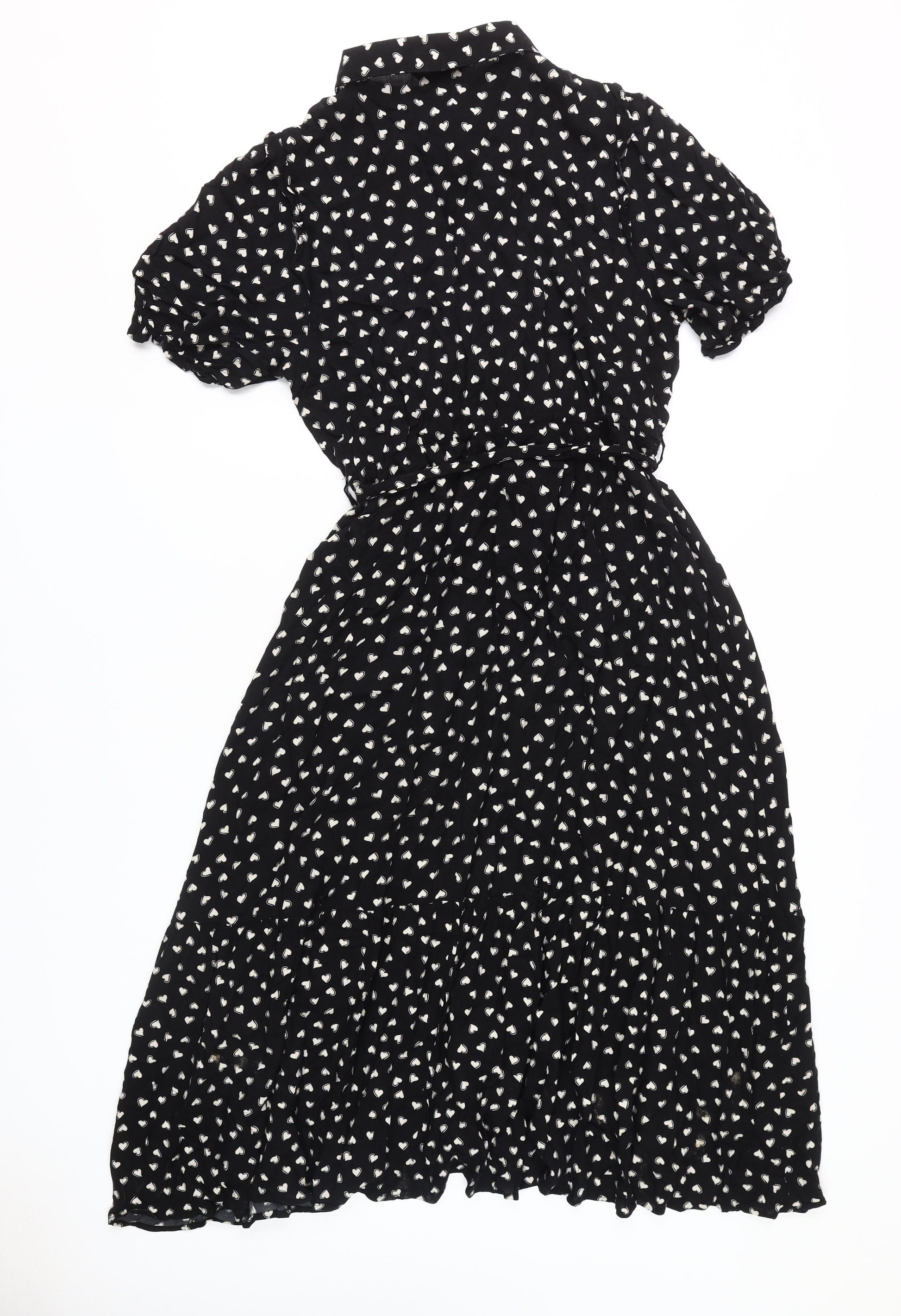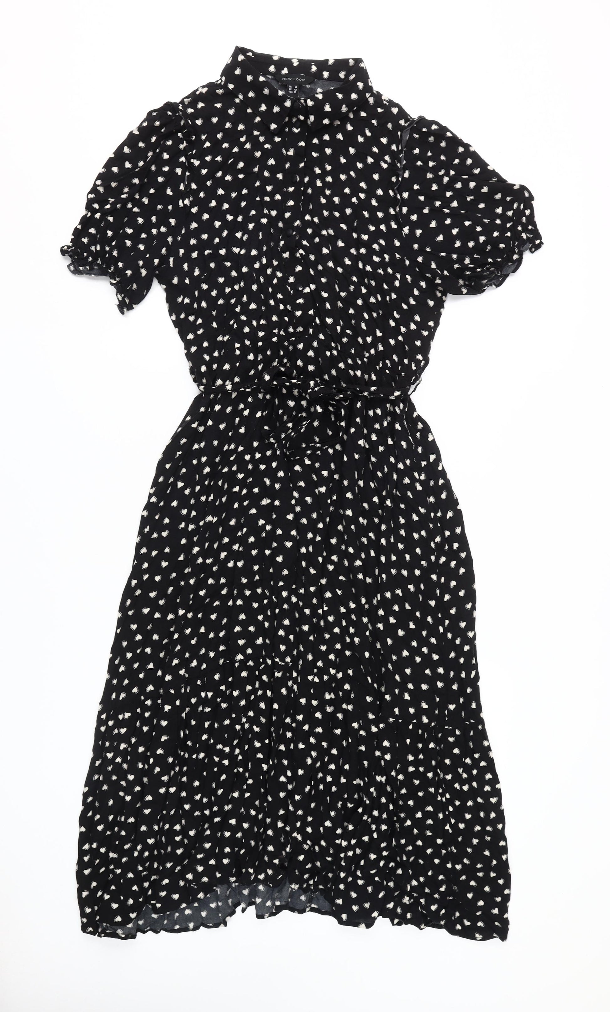 Step into timeless elegance with this charming New Look shirt dress. Designed for women, this black midi dress with subtle animal print combines comfort and classic style. Crafted from breathable woven viscose, it is perfect for spring, summer, and autumn. Featuring a collared neckline, short puff sleeves, and button closure, this dress radiates sophistication. The belted design highlights your waist, providing a flattering silhouette ideal for casual outings. Easy to care for, you can machine wash and keep it ready for any occasion. Discover the classic allure of this wardrobe essential, perfect for any day out.