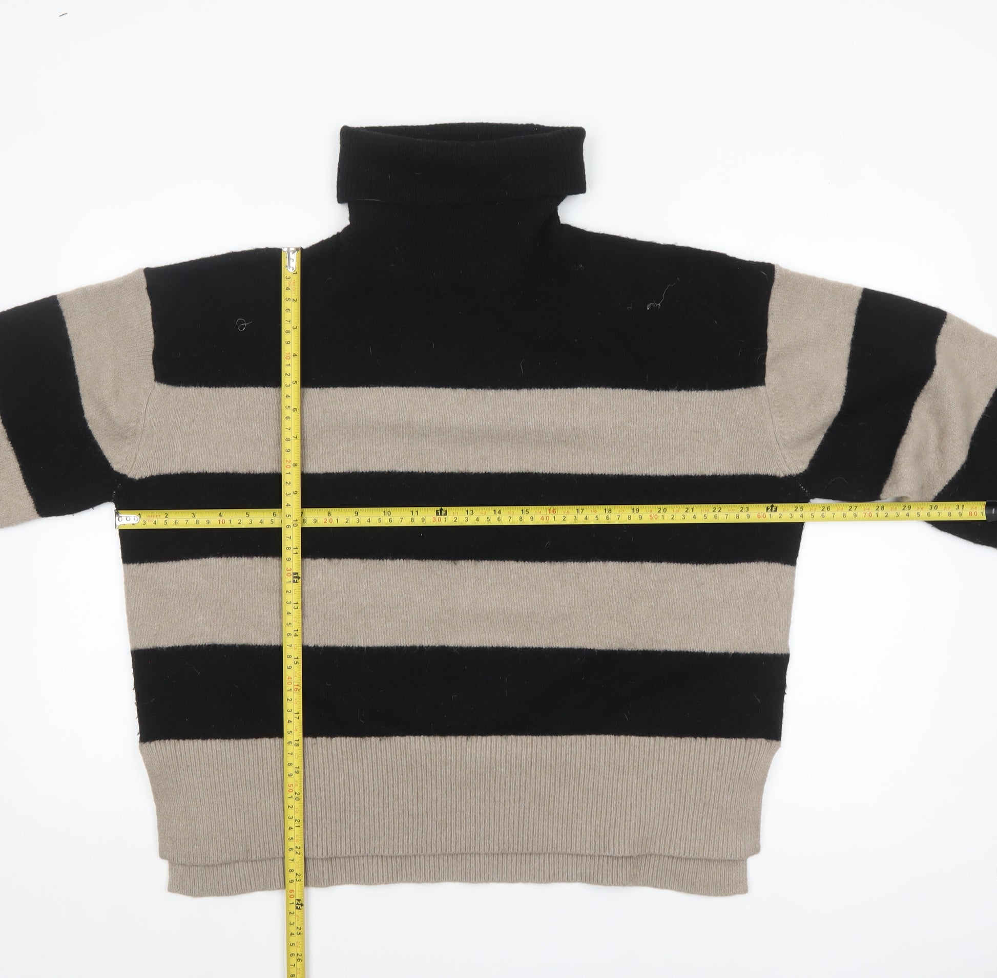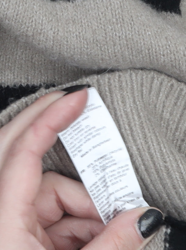 Women's Black & Beige Striped Roll Neck Jumper Size L