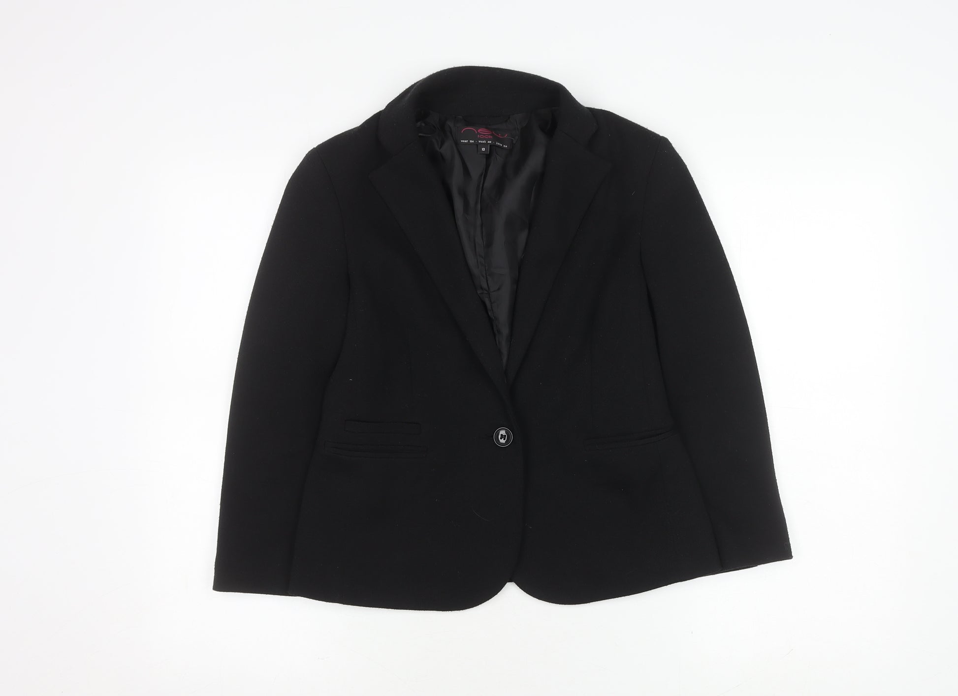 Elevate your wardrobe with this New Look Women's Black Blazer in size 10. Crafted for effortless style, this blazer is perfect for business, casual, and workwear occasions. Made from 100% polyester with a sleek woven finish, it features a regular fit and a single-breasted, one-button front for a classic look. The fully lined interior ensures a comfortable wear, while the long sleeves and regular-length cut add a sophisticated touch to any outfit. Ideal for the autumn and spring seasons, this blazer is machine washable for easy care. Add this versatile piece to your collection and experience the perfect blend of style and practicality. Condition is excellent with no visible damage, making it a smart addition to your closet at an unbeatable price.