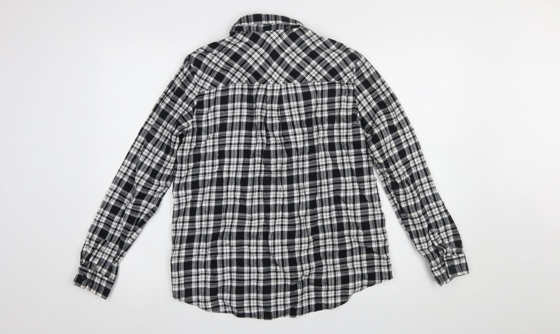 Women's Black Check Cotton Flannel Button-Up Shirt Size 10