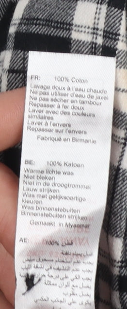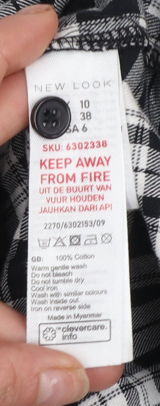 This New Look Women's Black Check Cotton Flannel Button-Up Shirt offers a classic and timeless piece for effortless everyday style. Made entirely from soft 100% cotton flannel, this shirt provides natural breathability and comfort, making it ideal for layering during the cooler months of autumn and winter. Designed with a traditional collared neckline and long classic-fitted sleeves featuring buttoned cuffs, this shirt combines casual comfort with flattering structure. The button-up front allows versatile wear, whether closed for a sleek, polished look or worn open over a tee for a laid-back outfit. Its all-over black and white check pattern ensures enduring style appeal, perfect for all casual occasions such as weekend outings, relaxed workdays, and smart-casual gatherings. The lightweight yet warm flannel fabric is soft to the touch, providing an easy-care garment that is machine washable, ensuring practicality for everyday wear. The single front chest pocket adds a classic touch and subtle detailing, enhancing its versatile charm. A regular fit ensures comfortable movement and a flattering silhouette suitable for most body types. This shirt is an excellent wardrobe staple, capable of being dressed up or down effortlessly. Pair it with jeans and boots for a cosy winter look or layer it over leggings for casual chic. With durable cotton construction and stylish classic design, it remains a reliable go-to for those who value both comfort and understated fashion. Its gently worn but well-maintained condition ensures continued longevity and wearability. Overall, this New Look flannel shirt presents great value and iconic casual style — an easy choice for women who appreciate simple, quality fashion. Perfect for those seeking a soft cotton feel and a relaxed checked design that transcends seasons. Update your essentials with this timeless black check button-up shirt from New Look.