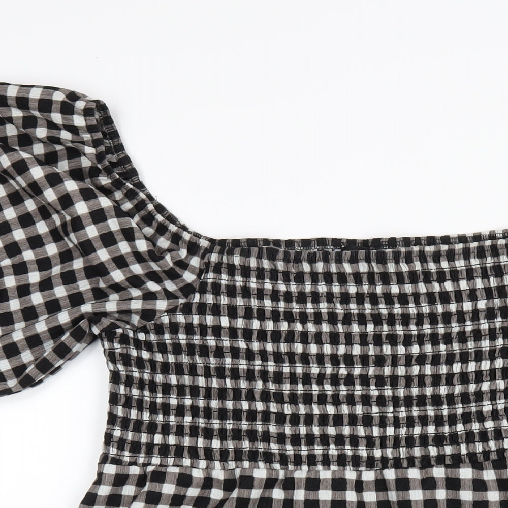 Womens Black Check Polyester A-Line Size 16 Square Neck Pullover