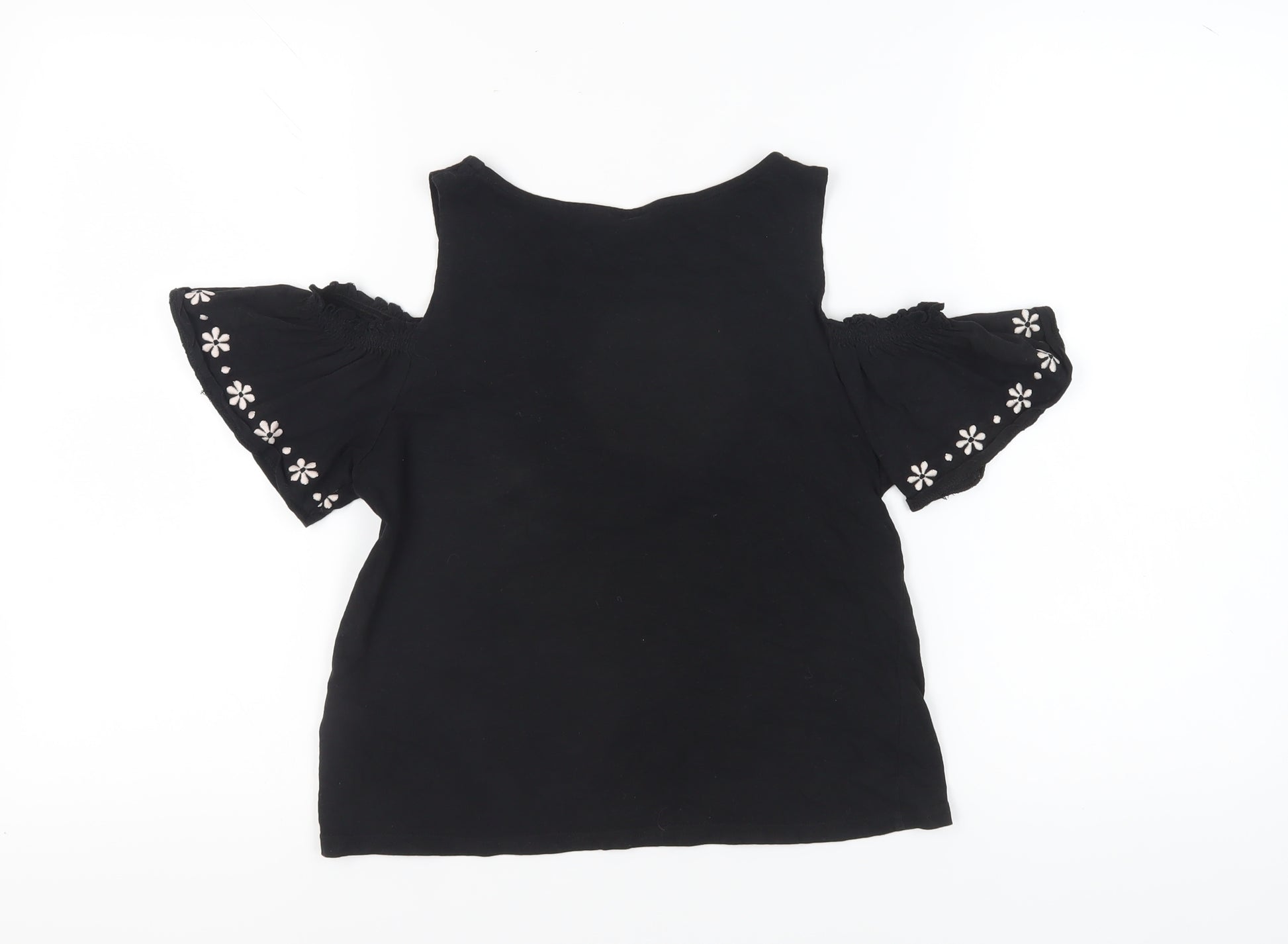 Add a touch of elegance and charm to your wardrobe with this delightful black top from New Look. Perfect for women seeking a feminine yet trendy style, this top in size 8 offers a chic cold shoulder design that effortlessly enhances your look. The exquisite floral embroidery accents add a burst of colour and personality, making it a standout piece for any occasion. Whether dressing up for an evening out or going for a casual day look, this versatile top pairs beautifully with skirts, jeans, or tailored trousers. Its classic black hue ensures it complements a variety of outfits, making it a must-have addition to any fashion-conscious woman's collection. With its regular size type, it provides a comfortable and flattering fit. Though this top is in very good condition with no visible defects, it showcases the unique style you're looking for in an item of clothing that represents both quality and aesthetic appeal. Feel effortlessly fashionable with this top that can transition seamlessly from day to night, ensuring you make a stylish statement wherever you go.