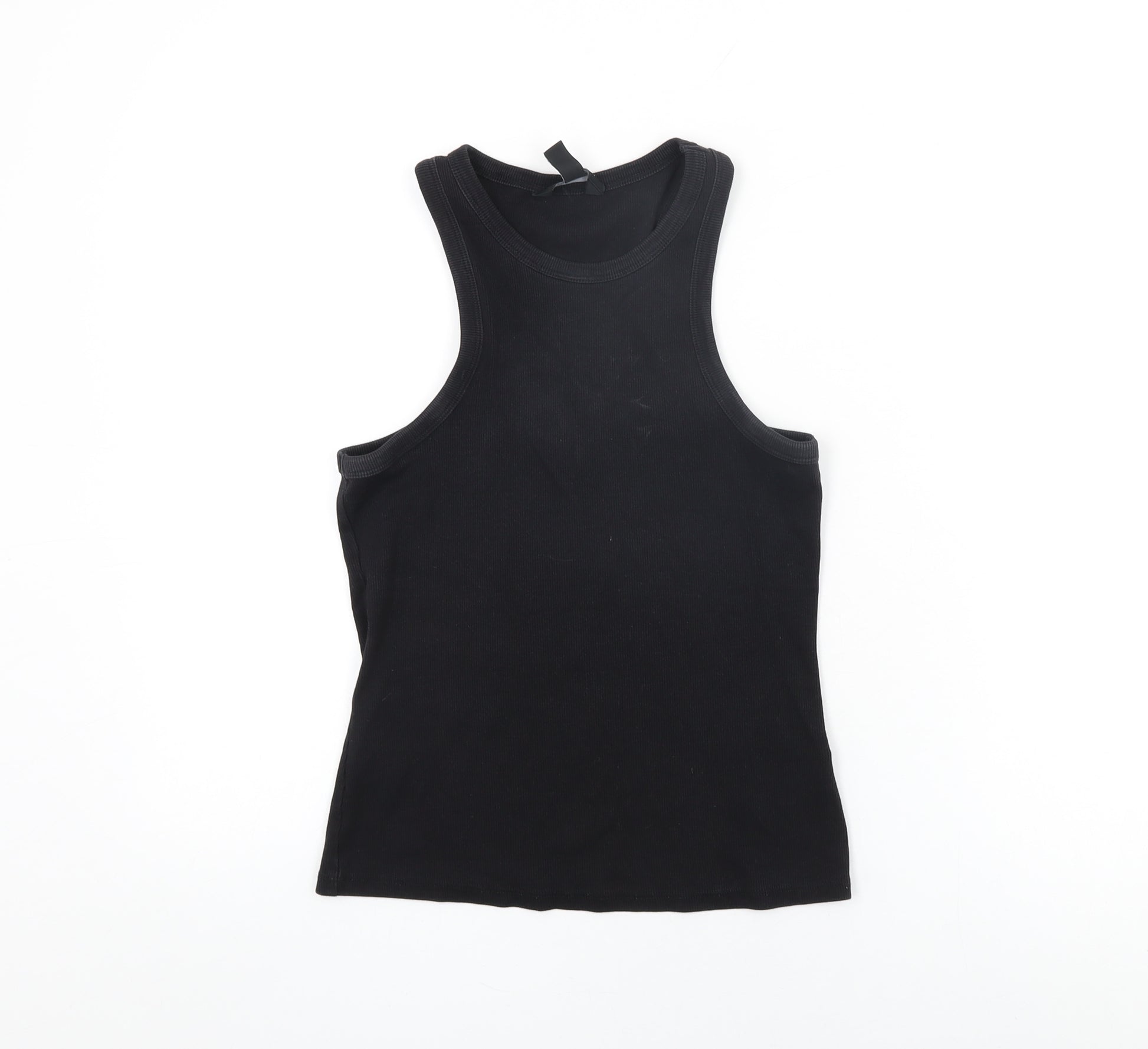 Womens Black Cotton Basic Tank Size 12 Round Neck