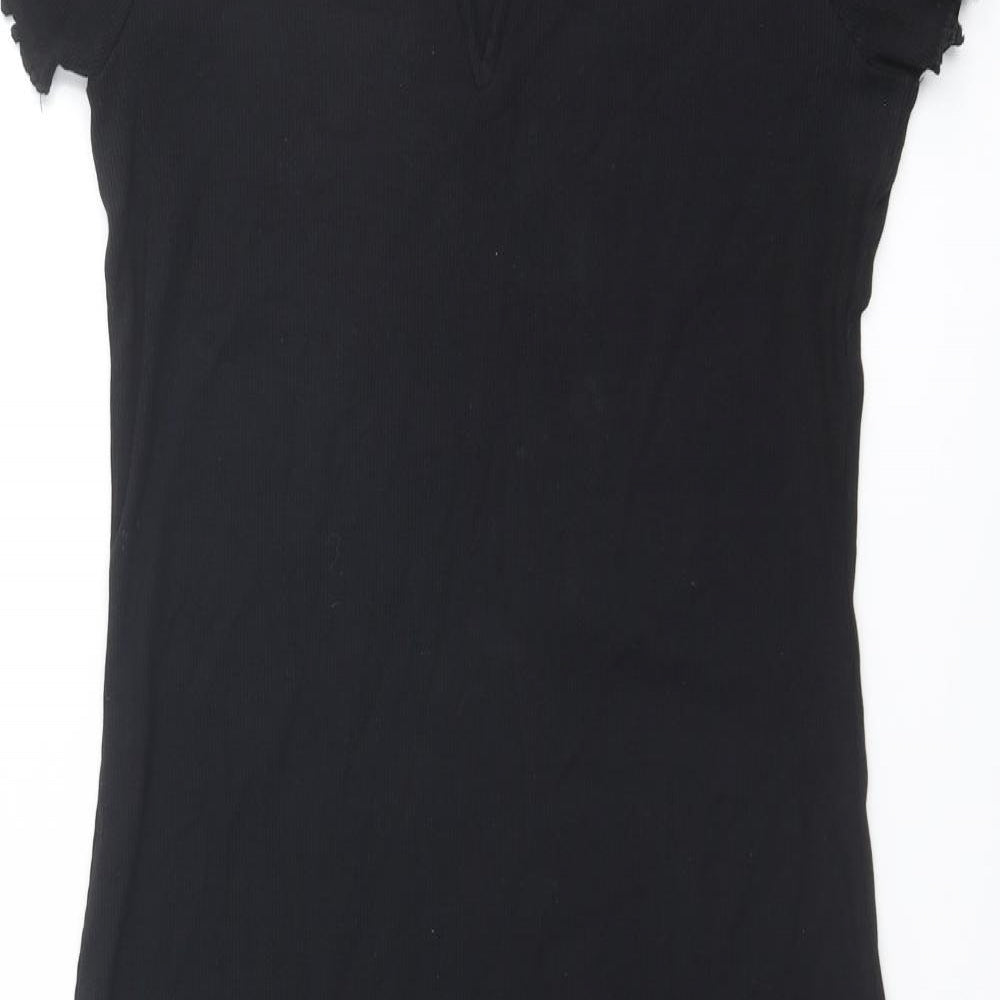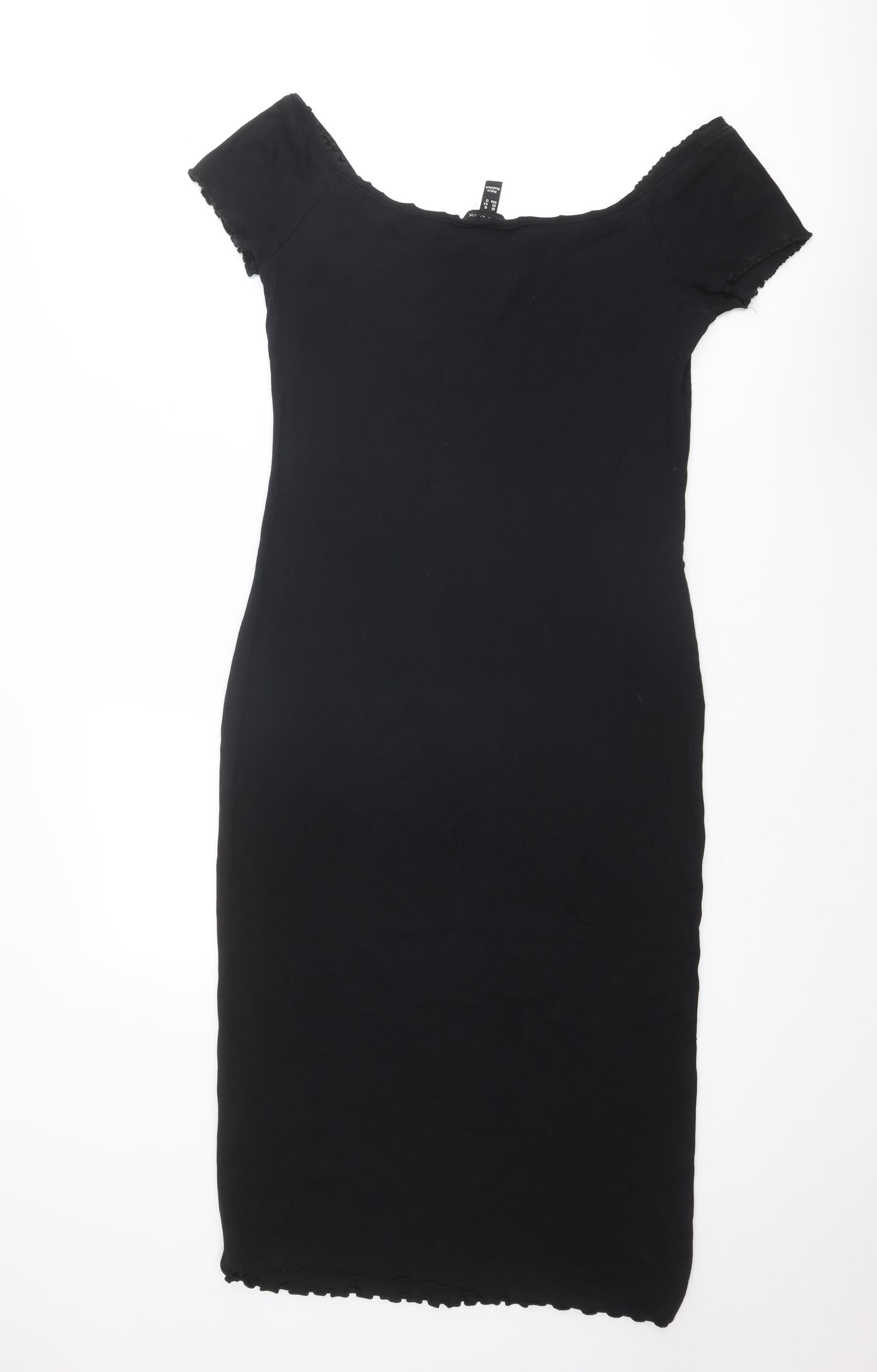 Womens Black Cotton Bodycon Size 16 Boat Neck Pullover